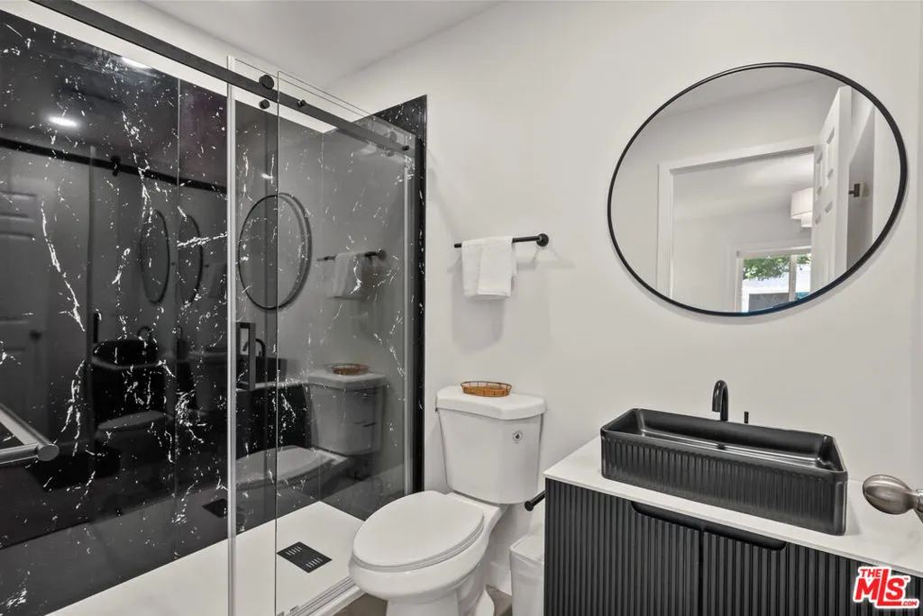 In the heart of Encino, this modern retreat showcases a seamless blend of classic mid-century warmth and fresh contemporary style, perfectly crafted for effortless California living. Step through the entry and into a light-filled living room, where vaulted beamed ceilings and a striking stone fireplace create a sense of warmth and quiet sophistication. Natural light floods the space, accentuating clean architectural lines and an open, airy flow. The layout transitions seamlessly into a spacious family room wrapped in glass, with sliding doors that open directly to the backyard blurring the line between indoor comfort and outdoor living. The kitchen stands as a vibrant focal point, featuring colorful quartz countertops, custom cabinetry, and state-of-the-art stainless steel appliances designed to elevate both everyday living and entertaining.The private primary suite offers a calm and inviting escape, complete with a generous walk-in closet and a beautifully remodeled bath with a frameless glass shower and modern finishes. Two additional bedrooms offer flexibility for guests, a home office, or a creative studio.Step outside to a resort-style backyard designed for true California living with a heated pool, spa, multiple patios for lounging or dining, and mature privacy landscaping. Whether hosting vibrant gatherings or enjoying a quiet morning by the water, the setting delivers an unmatched sense of ease and lifestyle. Additional highlights include a fully equipped gym, in-unit laundry, central air conditioning, built-ins throughout, and ample parking with both a garage and driveway. Set in one of Encino's most desirable neighborhoods, moments from Ventura Boulevard's premier dining, shopping, and amenities, this home embodies refined design, effortless functionality and elevated California living.