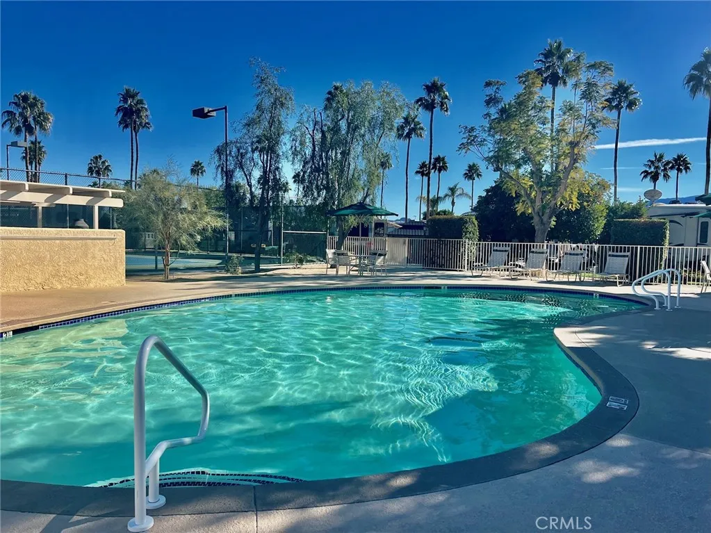 Welcome to resort living at Outdoor Resort Palm Springs (ORPS.COM) in this well kept 1 bedroom RV complete with patio and golf cart. The living area is includes a kitchen, dining area, living area with sofa bed, & desk. Step up to the master bedroom with numerous built in cabinetry, bathroom and shower area. Lots of windows and light plus a full size fridge and A/C. The expansive patio is adorned with a table & chairs, couch, umbrellas and barbeque creating the perfect setting for relaxation and entertainment. Positioned conveniently near the entrance for easy access. Outdoor Resorts Palm Springs is a Five Star RV Resort Community combining luxury with affordability. It is a guard gated resort that sits on 137 beautifully landscaped acres with 27 holes of executive golf, 10 tennis courts, 13 pickleball courts, 8 swimming pools, a fully equipped fitness center, espresso bar, sports bar, beauty salon/barber shop, full-service restaurant, convenience store, 2 club houses, activities, special events and so much more. Downtown Palm Springs is only 5 miles away, close to Palm Desert, Indian Canyons and there is a casino a mile away. Property gets great rents. Agent is owner.