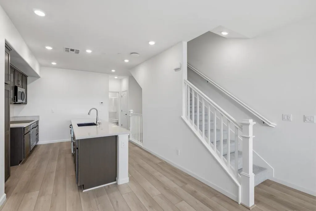 Homebuyer Favorite! Enjoy extra space with an ADU (accessory dwelling unit) complete with separate entrance, kitchen and full bath. The main home showcases a bright and spacious dining and living area (leading to your own private outdoor deck), a modern kitchen with an island and pendant lighting, quartz countertops and stainless-steel appliances. Convenient bedroom and full bath on same floor. On the 3rd floor, a large primary bedroom leads to a walk-in closet. Luxury vinyl plank flooring throughout. Other features include a 40-amp. electric charging station pre-wiring, solar energy system (lease or purchase required) and a limited 10-year warranty. This brand-new community will feature a community play area, bike lane, bike racks and bike repair station, plus park-like areas with seating, open space and art installations. Walking distance to Castro Valley BART station; convenient to I-580 and Tri Valley, San Jose and Mid-Peninsula job centers. Close to outdoor recreation, including Chabot Regional Park and Cull Canyon Regional Recreation Area.