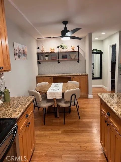 Amazing condo with great location near shopping, Starbucks, restaurants, grocery, easy access to freeway, located in the heart of Agoura Hills. Available furnished. Award winning LVUSD schools and only about 12 miles from beautiful Malibu beaches. This condominium offers beautiful wood flooring throughout the home with an upgraded kitchen that has stainless steel appliances, maple cabinets, and granite countertops. Built-in cabinets in dining room area. This one-bedroom offers a walk-in closet and ceiling fan. This unit is close to the community gated pool, spa, and laundry facility with plenty of grassy areas and pet waste stations throughout. Water, gas, sewer, and landscaping costs included. Gated entry. Storage locker located above assigned carport. Pets allowed.