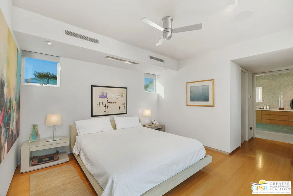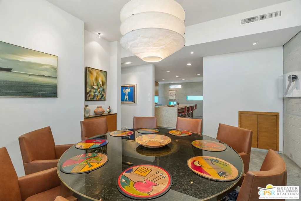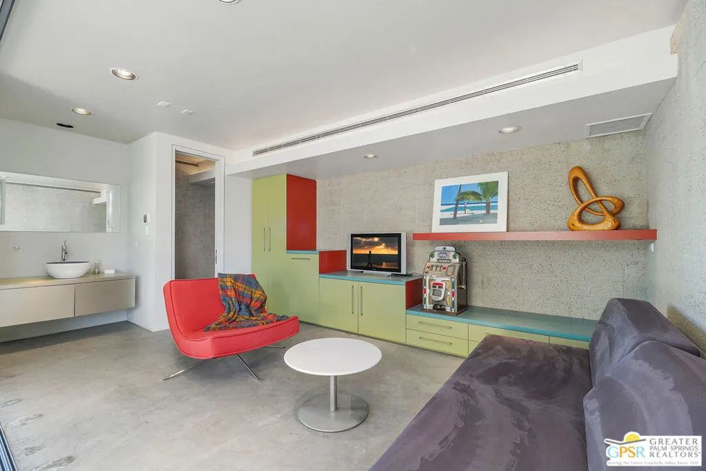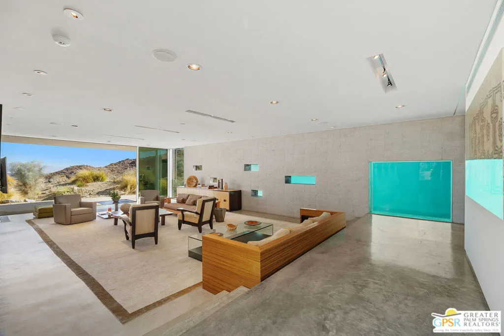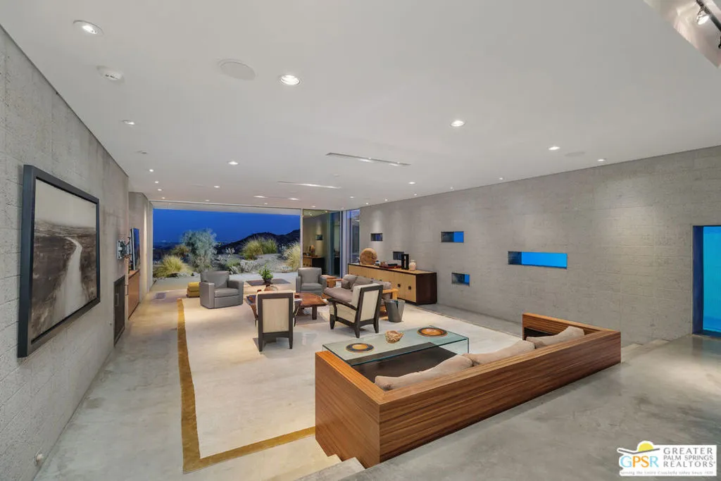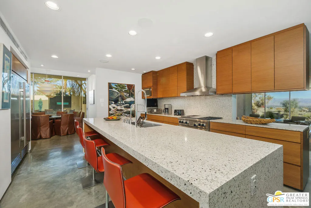 MLS listed price is for 12 months or more. Call for monthly and seasonal rates. Perched gracefully above the Ritz-Carlton, this architecturally significant residence by visionary Ana Escalante, created in collaboration with mid-century modern legend Don Wexler, is defined by its pedigree, originality, and commanding desert views. Thoughtfully integrated into its desert setting, the home embraces its site, landscape, and light in a way that feels both intentional and timeless.At the heart of the home, a 75-foot lap pool flows through the structure like a ribbon of light and water, visible from the living, dining, and kitchen spaces through walls of glass. By day, it reflects the shifting desert sky; by night, it glows as a sculptural centerpiece. The pool has been featured in the Los Angeles Times, and the home has been used for commercial print and editorial photography, underscoring its visual and architectural impact.The design draws directly from the desert's raw beauty, integrating sustainable materials and native landscaping to create an environment that feels refined yet elemental. Formaldehyde-free bamboo floors and cabinetry are paired with terrazzo, recycled-glass tile, exposed concrete block, and materials chosen for integrity and longevity rather than trend. Executed by Van Vleet Construction with interiors by Mark Nichols, the home reflects disciplined craftsmanship and understated sophistication throughout. The residence was a featured property in 2007 and received the Palm Springs Modern Committee (ModCom) Award for Excellence in New Modern Design, affirming its place within the region's modern architectural canon. The chef's kitchen balances performance and design, featuring a Wolf range and oven, oversized Sub-Zero refrigeration, integrated refrigerator drawers, and dedicated wine storage, ideal for both intimate evenings and large-scale entertaining. Living spaces are arranged to maximize privacy, flow, and views. Two expansive upper-level primary suites both connect directly to the panoramic deck, offering sweeping vistas of the valley and the mountains beyond. One suite is positioned above the pool, providing a uniquely tranquil perspective as water, sky, and desert converge. A mid-level bedroom suite with private bath and direct access to the three-car garage offers excellent flexibility for guests or an office retreat. Additional spaces include a versatile poolside flex room and private sauna, an intimate sanctuary for restoration after a swim or a day in the desert. From the expansive upper deck, the valley unfolds in cinematic fashion, framing desert sunsets, starlit nights, and luminous morning light. While the refined amenities of the Ritz-Carlton are only a short walk away, the lasting impression is shaped by the home's architectural lineage, its seamless relationship to the desert landscape, and its extraordinary views. Mid-century lineage. Modern luxury. Natural desert elegance. A rare opportunity to own a published, award-recognized architectural work where design, landscape, and vision converge above Rancho Mirage. Footnote / Disclosure Public records reflect five (5) bathrooms. Seller reports one (1) full bath and two (2) three-quarter baths. Buyer to independently verify all information deemed important. The pool room includes a closet, sliding door, and is connected to the home's HVAC system; buyer to verify permitted use. (Listing agent is owner.)