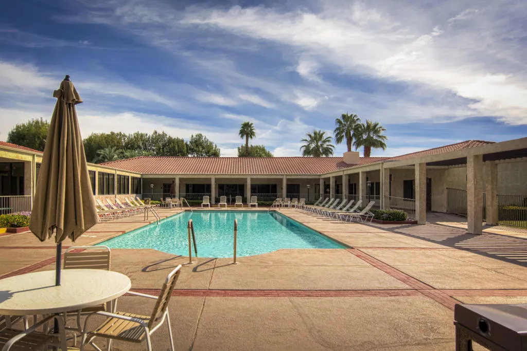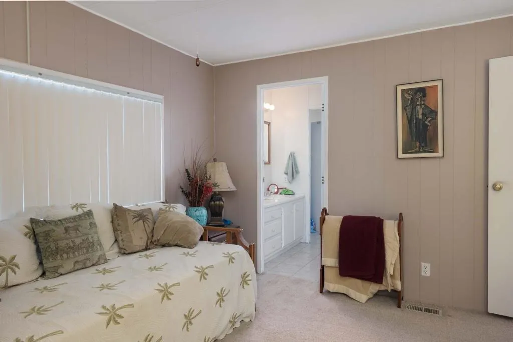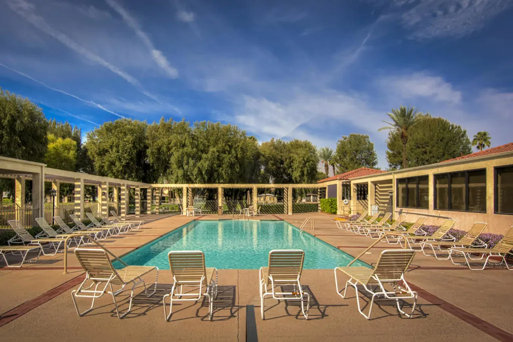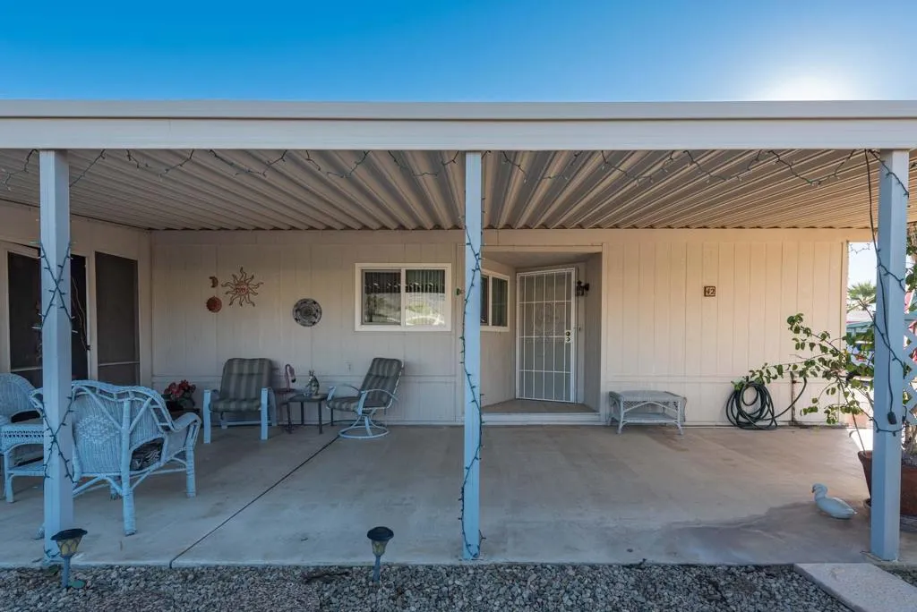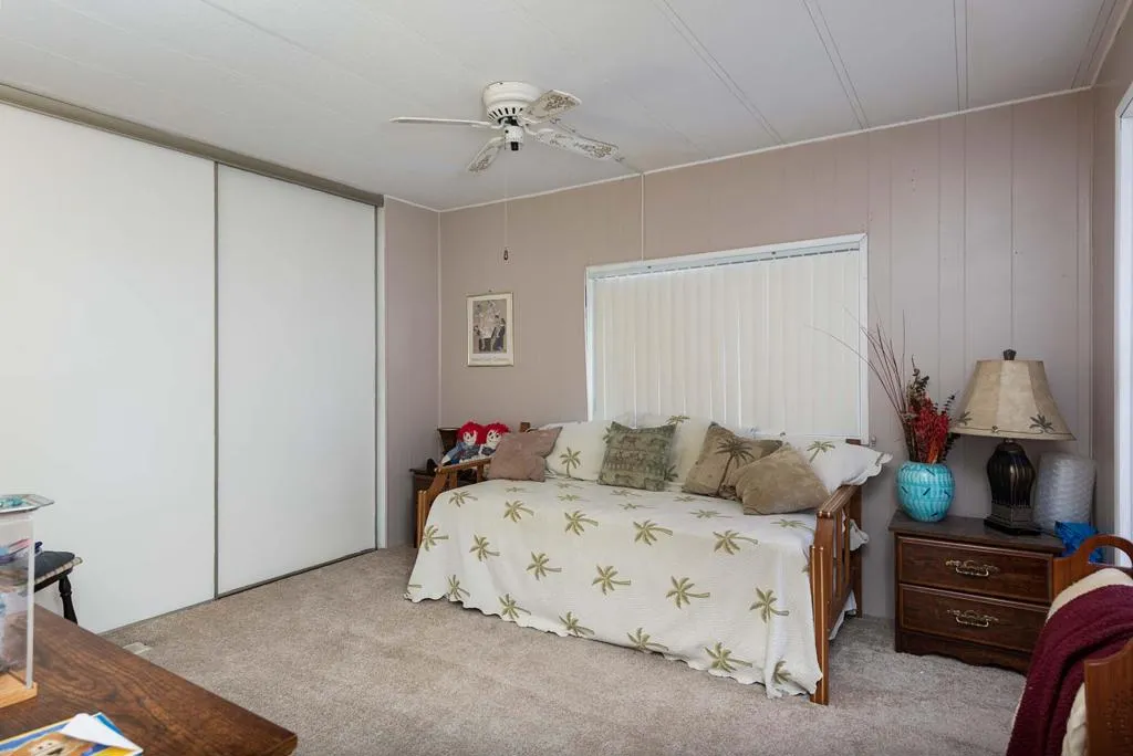 Welcome to the Premier 55+ Mobile Home Community in the Valley. This home is located on a quiet interior street with multiple guest parking nearby. There is a front patio area with great South & Western Mtn. views! As you enter the front door, this well maintained home features a large Living & Dining Room area, Dual Pane windows help with noise and are energy efficient. The Family Room and Kitchen are open to each other and lead to a large ''California'' screened room with brick flooring. The carport has a small sitting area and large storage shed for extra belongings. Also, the entry on the carport side leads to the laundry room with newer Washer and Dryer and has a Large Linen closet and the guest bathroom with shower over tub. The guest room could also be utilized as an office and has ample closet space. The Primary Suite is large and has a separate wall A/C. The Primary bath features updated step in shower and also large garden tub. There is an alternative Evaporative cooling system, both the A/C & Roof have been replaced within the past 10 years. The Canyon is centrally located in the Valley and has easy Freeway access on Gene Autry Trail or Date Palm Dr. We are near shopping, entertainment, PS Int'l Airport and 10-12 Min. to Downtown Palm Springs! The Canyon features only Full-Time Residence or Second Homes. We have wonderful park like greenbelt grounds with Tennis & Pickleball. Our clubhouse boasts an upgraded Banquet Hall, Gym, Card Room and Library along with 4 Enclosed Heated and Cooled Shuffleboard Lanes, Two pools and a Spa. You will need to qualify as a resident with 3 times space rent $950 = $2850 along with a FICO score of 750. One domestic animal of 20 lbs unless it is a Service Dog. The Canyon is the place to be for 55+ Adult Lifestyle Living.