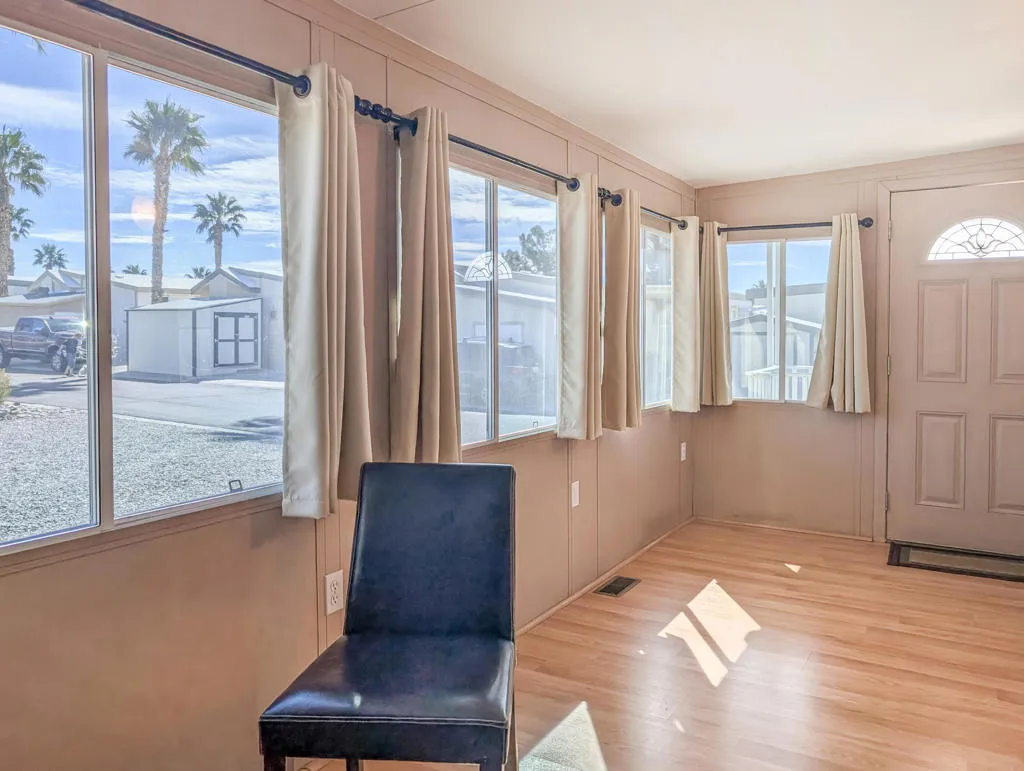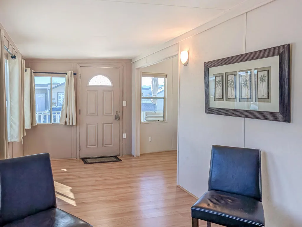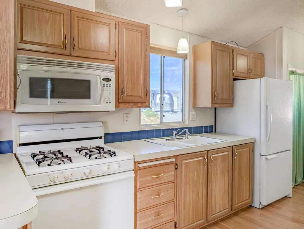 Charming and well-appointed 2001 Fleetwood Park Model home is now available in the 55+ Caliente Springs Resort. The resort offers amenities such as a hot mineral-fed pool and spas, a 9-hole golf course, a fitness center, laundry facilities, and a library. This property includes ~600 sq. ft., a 1 bedroom, 1 bathroom home with wood flooring throughout, upgraded cabinets and counters, ample storage, and views of San Jacinto and the Little San Bernardino Mountains from inside the home and on the covered deck. This home is suitable for either a seasonal getaway or full-time living. The community is very active and involved. Please note that the lot is not owned; space rent is $671. Financing options are available (OAC).