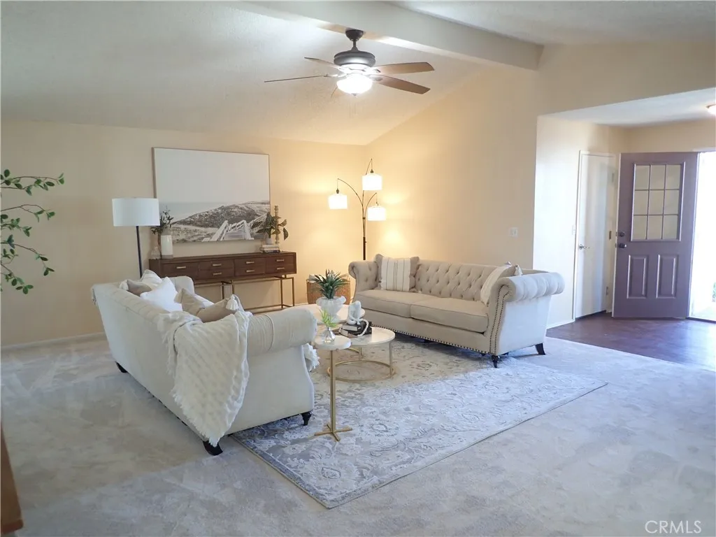 This Beautiful home is located in the gated Senior Community of Sun Meadows. Its large footprint boasts over 1500 sq ft of living space with a fully covered patio and attached 2 car garage. Enter this well maintained home into the large open living space with vaulted ceilings. As you enter, to the left is a formal dining room area with a doorway leading into the large open kitchen with upgraded appliances and counter tops. Venture down the hallway which leads to indoor laundry room, 2nd bathroom and 2nd bedroom. On the opposite side of the home is a large spacious primary bedroom with walk in closet and attached main bathroom with separate shower and large soaking tub. This home has brand new carpet, newer paint, newer A/C unit and Water Heater. Must See home!!