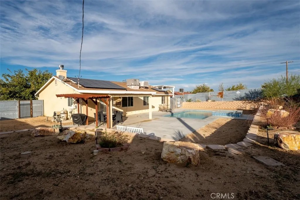 Welcome to 60205 Latham Trail, a stunning desert retreat nestled in the desirable Upper Friendly Hills neighborhood of Joshua Tree. Short sale is approved. This beautifully designed single-family residence offers the perfect blend of modern comfort and serene desert charm. Sitting on a spacious lot, this home boasts breathtaking mountain and sunset views, creating a peaceful escape from the everyday hustle. Inside, you'll find an inviting open-concept layout with high ceilings, abundant natural light, and stylish finishes throughout. The kitchen is equipped with modern appliances, sleek countertops, and ample storage, making it perfect for cooking and entertaining. The primary suite provides a tranquil oasis with a spa-like bathroom and direct outdoor access to enjoy the fresh desert air. Step outside to your private backyard retreat, where you can relax under the stars, soak in the sun, or entertain guests with the stunning desert landscape as your backdrop. Conveniently located just minutes from Joshua Tree National Park, local dining, and shopping, this home is ideal for a full-time residence, vacation getaway, or investment opportunity.