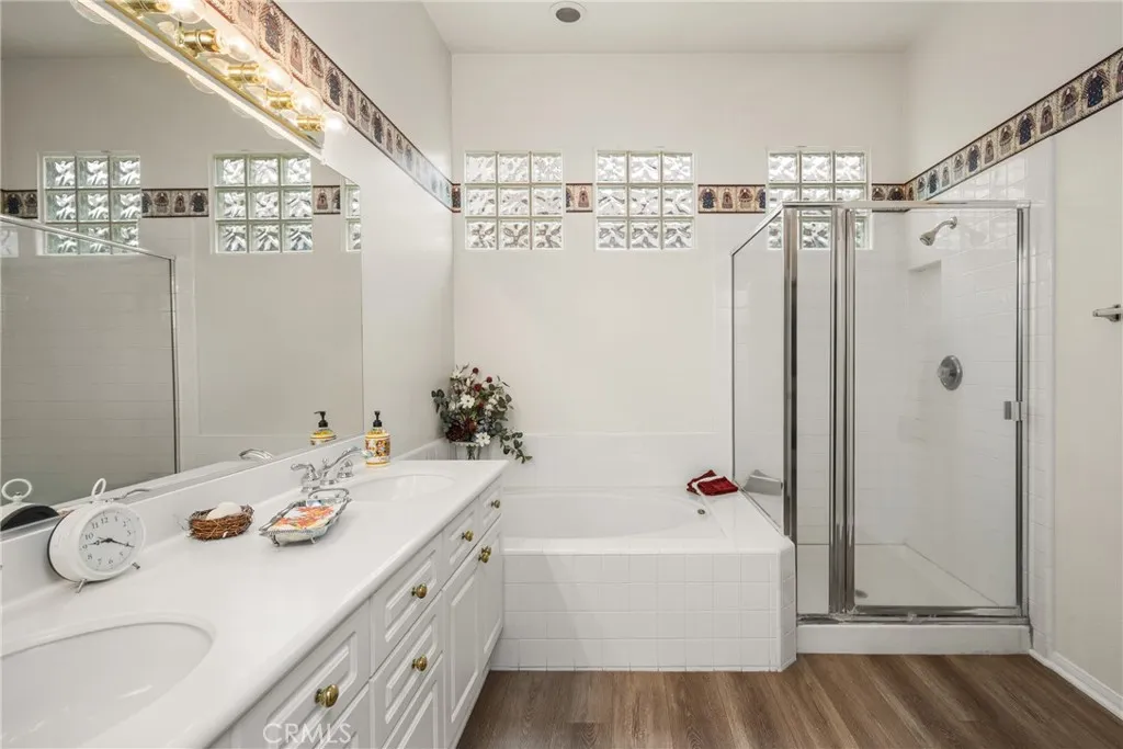 Welcome to this three bedroom, two bath single level home in the gated community of Kensington Park. Lovelingly maintained, this home has been refreshed with new luxury vinyl plank flooring throughout. Step inside to find an abundance of natural light that accucentuates the open floorplan. The spacious living and dining rooms lead into the family room that opens to casual dining and the kitchen conveniently located for both outdoor and indoor dining, what California living is all about. The expansive primary suite has a walk-in closet, bath with double sinks, separate bath and shower and private commode. Large secondary bedrooms are currently a home office and inviting quest quarters. Additionally, the 2-car garage has direct home access. This home is as funcitiinal as it is inviting. Beyond your front door, Kensington residents enjoy a sparkling pool and spa perfect for unwinding close to home. All of this is offered in a peaceful but well-connected community just minutes from local shopping, dining, parks and freeway access.