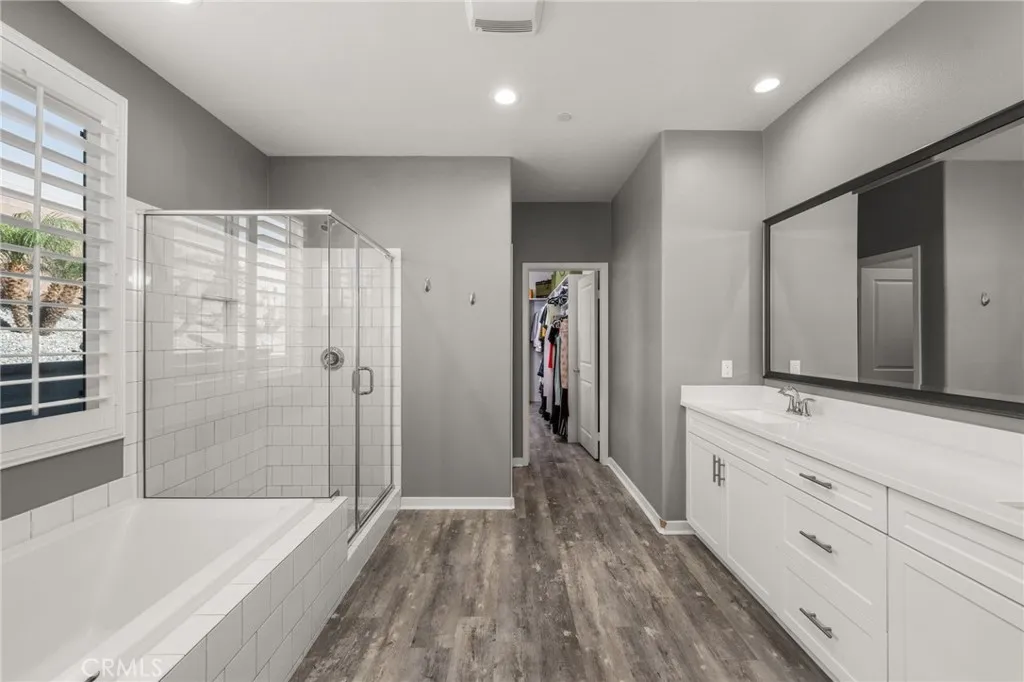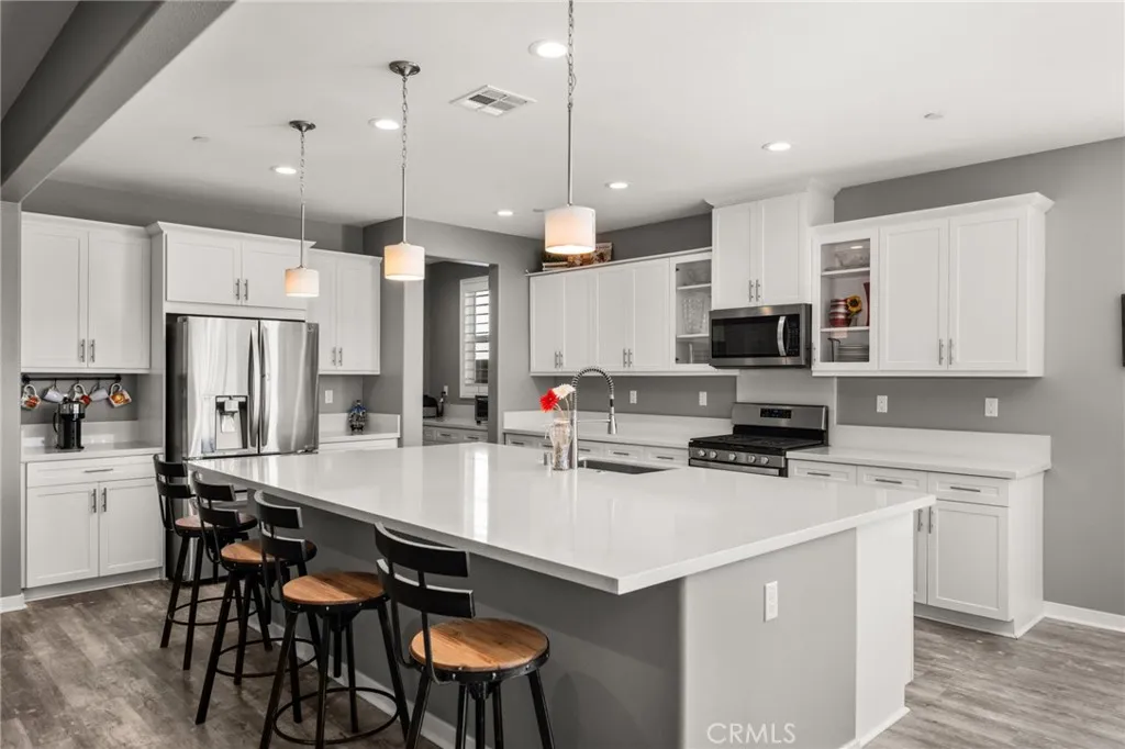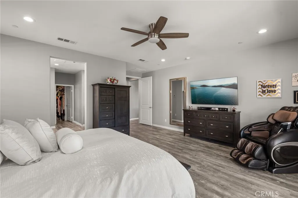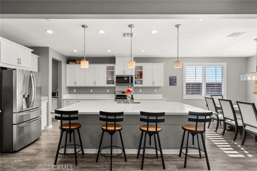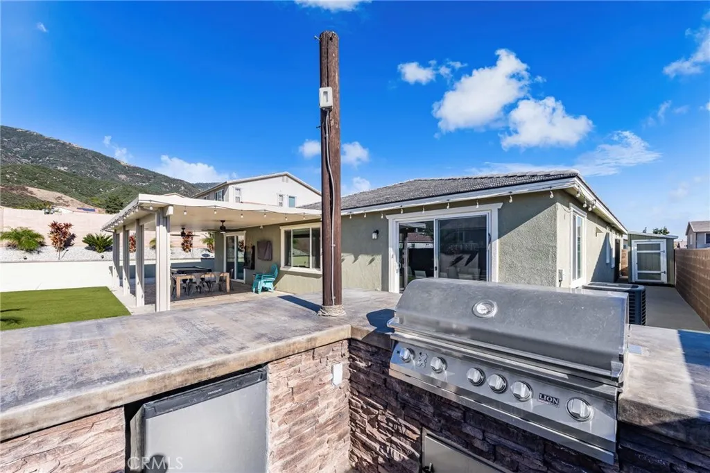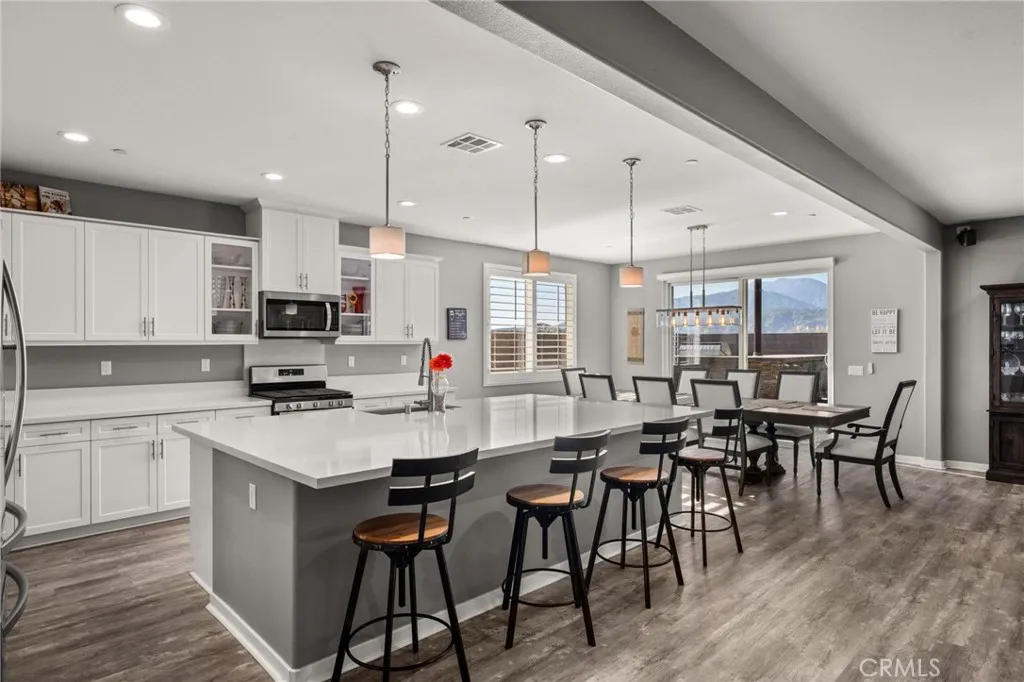 Welcome to 6916 Baroque Court, San Bernardino — a beautifully upgraded home designed for modern living and effortless entertaining. Step inside and you’ll immediately notice the attention to detail throughout. This stunning residence features shutters on every window, luxury vinyl plank flooring, and an inviting open-concept layout filled with natural light. The chef-inspired kitchen is the heart of the home, showcasing sleek quartz countertops, ample cabinetry, and a large center island perfect for gatherings. The home offers a versatile junior suite, ideal for guests or extended family, providing its own private bath and comfortable living space. The primary suite serves as a serene retreat, complete with a custom-built walk-in closet designed with style and organization in mind. Step into your backyard oasis, where outdoor living truly shines. Enjoy the custom built-in BBQ area with fridge and sink, perfect for summer cookouts and celebrations. Relax under the Alumawood patio cover or gather around the gas fire pit for cozy evenings under the stars. Located in a desirable neighborhood of San Bernardino, this home combines thoughtful upgrades, modern finishes, and a welcoming layout — offering the perfect balance of comfort and sophistication. 6916 Baroque Court — where quality, style, and livability meet.