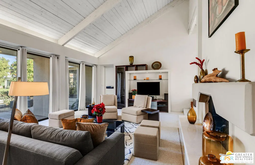 Back on the Market! Experience the best of desert resort living in this beautifully appointed three-bedroom, three-bath condominium overlooking the sparkling pool and the famed Tournament Course at Mission Hills Country Club. Ideally located just a short stroll from the clubhouse, this home combines timeless design with a relaxed, open floor plan perfect for both entertaining and everyday comfort. A formal gated courtyard entry welcomes you into a spacious great room with vaulted ceilings, a fireplace, wet bar, and walls of glass that bring the outdoors in. The gourmet kitchen offers a breakfast bar and seamless flow to the dining area, ideal for casual mornings or elegant dinners. There are dual primary suites, each opening to private patios. The larger suite is a true retreat featuring a sitting area, built-in cabinetry, dressing area, sunken tub, and an atrium bath that exudes spa-like serenity. The third bedroom also opens to a private patio, giving guests comfort and privacy. The rear patio, just steps from the pool, is an entertainer's dream with a built-in barbecue, fountain, and a convenient pass-through from the wet bar, perfect for al fresco gatherings under the desert sky. A detached two-car plus golf cart garage adds convenience, while a newer washer and dryer complete the home's thoughtful amenities. Offered furnished per inventory, this residence is your turnkey opportunity to live the coveted Mission Hills lifestyle. Enjoy access to three championship 18-hole golf courses, 43 racquet courts, croquet, a state-of-the-art fitness center, and exceptional dining all within this prestigious guard-gated community. Come take a look at what this home and life in Mission Hills provides.