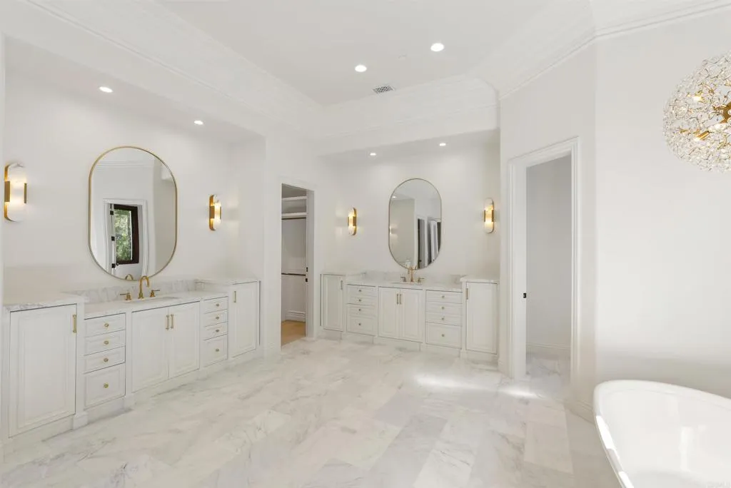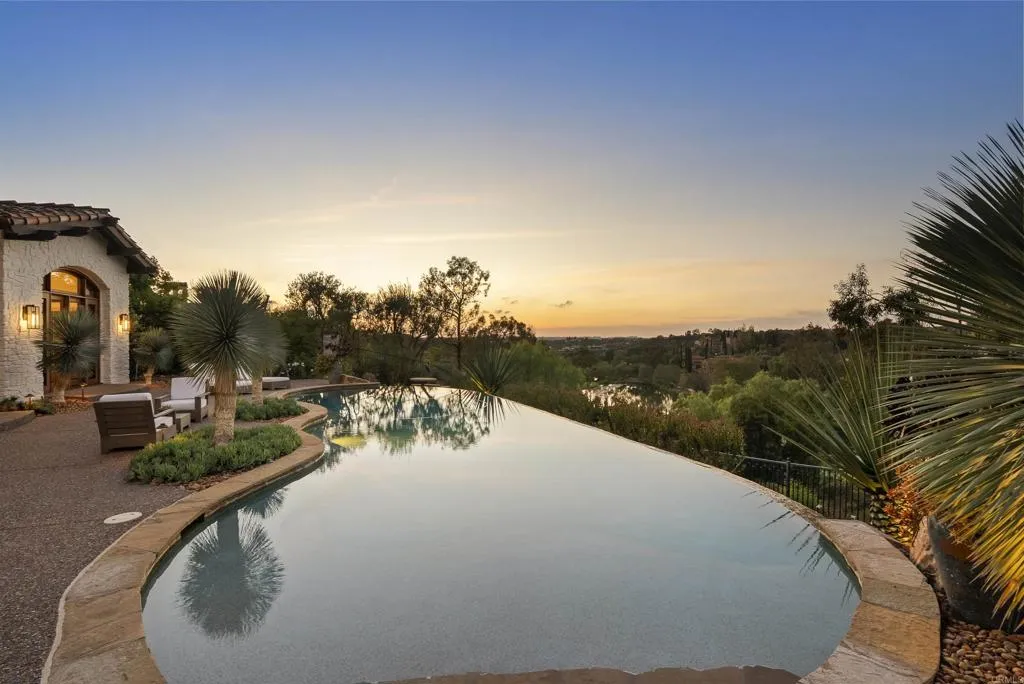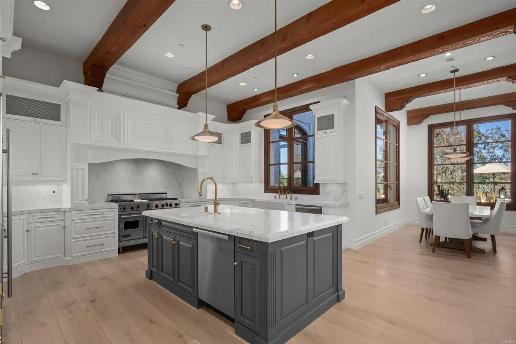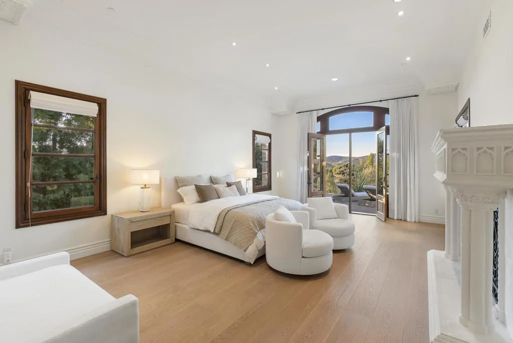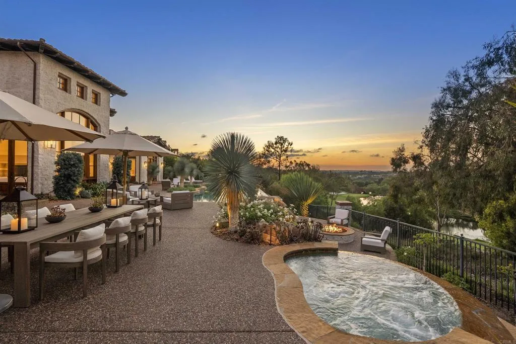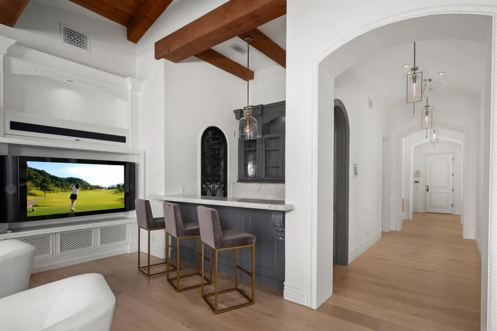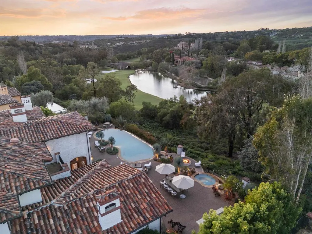 This stunning 5+ bedroom modern European estate offers an expansive view that overlooks the 9th Fairway and iconic clubhouse within the prestigious guard-gated community of The Bridges in Rancho Santa Fe. Extensively remodeled, completed in 2025, the 8,900+sqft residence captures the essence of refined living with a seamless blend of craftsmanship, comfort, and design—all framed by one of the community’s most sought-after views. Inside, natural light pours through expansive windows and French doors that open to the golf course, creating a perfect indoor/outdoor connection ideal for both daily living and entertaining. Every finish was chosen with care—from hand-finished limewashed fireplaces and European white-oak floors to Italian marble countertops, burnished-brass fixtures, and designer lighting. The reimagined kitchen serves as the heart of the home with a farmhouse-style sink, premium appliances, oversized walk-in pantry, bar, and temperature-controlled wine cellar that make entertaining effortless. Additional spaces include a built-out home theater, elegant office, and a separate guest wing with private access that offers versatility for guests, multigenerational living, or creative use. The primary suite is a true retreat, featuring a newly remodeled bathroom in Italian marble with dual vanities, a freestanding soaking tub, and spa-like tranquility. Outside, the lush grounds create a resort-like backdrop for year-round living with a saltwater pool and spa, built-in BBQ bar, and sweeping fairway views framed by golden evening light over the clubhouse. Set within one of Rancho Santa Fe’s most desirable golf communities, residents of The Bridges enjoy world-class amenities, fine dining, and 24-hour security—all just minutes from Rancho Santa Fe Village, top-rated schools, and the coastal towns of Del Mar, Solana Beach and Encinitas.