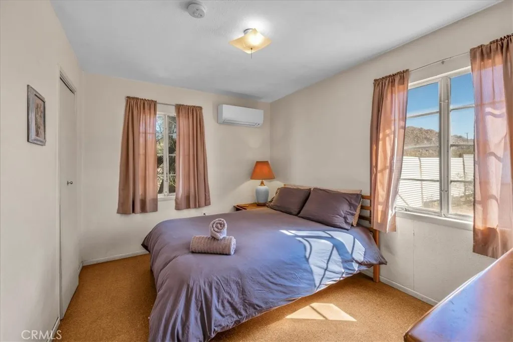 Authentic 1953 midcentury cabin offering a serene desert retreat just minutes from downtown Joshua Tree. Thoughtfully preserved with original charm, the home is filled with warm light and a cozy, intentional ambiance that feels both timeless and calming. Enjoy morning coffee on the shaded front porch and unwind in the private, fully fenced backyard—ideal for quiet evenings under the desert sky. The property offers a flexible layout, including a detached garage with potential for creative use or future expansion (buyer to verify). Currently used as a part-time short-term rental, providing optional income offset when not in residence. Equally suited for full-time living, a weekend escape, or a low-maintenance second home. Walking distance to downtown shops and dining, and close to iconic hiking destinations including Coyote Hole and nearby boulder landscapes. A rare opportunity to own a peaceful, design-forward desert hideaway in one of Joshua Tree’s most desirable pockets.