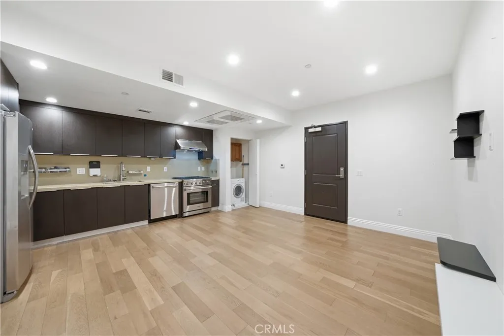 Experience stylish city living in one of LA’s most vibrant and dynamic neighborhoods! This beautifully updated modern condo offers 1 luxurious primary suite . Designed with both comfort and functionality in mind, the open-concept layout seamlessly connects the living, dining, and kitchen areas, creating the perfect space for entertaining or everyday living. The sleek, upgraded kitchen features stainless steel appliances, quartz countertops, and contemporary cabinetry that complement the home’s modern aesthetic. Additional highlights include recessed lighting, central air and heat, in-unit laundry. Enjoy peace of mind with 2 secured underground parking spaces and premium community amenities such as a sparkling swimming pool, recreation room, and a secured lobby entrance. Situated in the highly sought-after Koreatown neighborhood, you’ll be just minutes from Downtown LA, world-class dining, shopping, nightlife, and public transit.