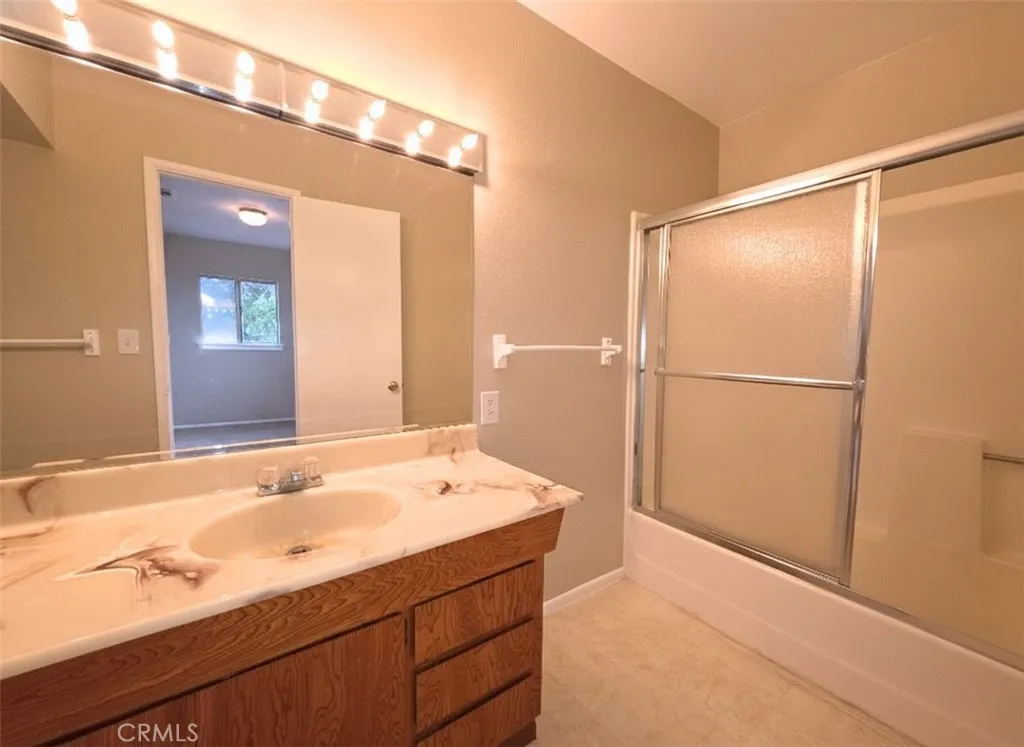 Crestline’s “D Streets” offers this versatile San Moritz residence blending easy-care vinyl siding, two decks for outdoor living, and a layout that flexes with today’s needs. Entry is into a welcoming flex room anchored by a wood-burning stove fireplace; the full laundry room and a half bath sit nearby, and the entry-level primary suite provides a deep closet and full bath for convenient single-level living. Upstairs, an open-concept kitchen / living / dining area orients gatherings around a breakfast bar and opens to the upper deck, where far forest and mountain views frame the treetops. Two additional bedrooms share an oversized Jack-and-Jill bath with built-in storage, and a den functions as an optional fourth bedroom or dedicated office. Outside, a covered entry deck with a porch swing extends daily life into the fresh air, while the level, fenced back yard supports pets, play, or garden use.