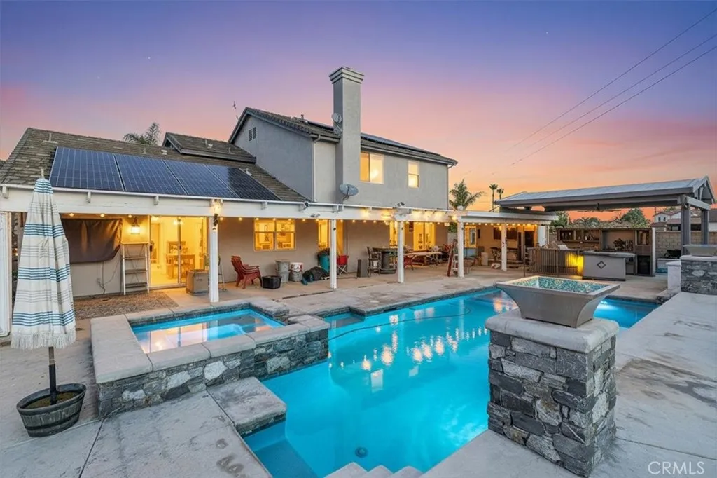 Experience luxury living in the prestigious Remington Estates community of Norco. This expansive 3,632 sq ft estate offers 5 bedrooms, an executive office, a spacious loft, and 3.5 beautifully appointed bathrooms. Thoughtfully designed for both comfort and entertaining, the home features formal living, dining, and family rooms that blend seamlessly to create an inviting and elegant atmosphere. The custom chef’s kitchen is the centerpiece of the home, showcasing Quartzite countertops, a large island, premium finishes, and a well-equipped butler’s pantry. The main-level primary suite provides a private sanctuary, complete with direct access to the office, perfect for a personal workspace or retreat. The suite also features patio access, a generous walk-in closet, and a luxurious bathroom with a custom vanity and sink, along with a separate soaking tub and shower. Upstairs, a versatile loft/game room complements four additional oversized bedrooms, offering comfort and flexibility for guests, family, or multi-generational living. With numerous upgrades throughout the home, this residence must be seen in person to be fully appreciated. Set on a sprawling 0.65-acre lot, the property delivers an exceptional outdoor lifestyle. Enjoy resort-style amenities including a saltwater pool, outdoor kitchen, expansive covered patio, an impressive RV parking approximately 20'×75' with RV direct waste disposal system. Additional standout features include 40 owned solar panels, a 30x50 workshop with its own electrical panel, an attached 3-car garage, additional detached 2-car garage, a small storage shed, and meticulously maintained landscaping that enhances the estate’s curb appeal. Situated in one of Norco’s most desirable neighborhoods, this home offers unmatched space, craftsmanship, and functionality—along with the added benefit of low taxes and no HOA. This is an extraordinary opportunity to own a true Norco luxury estate.