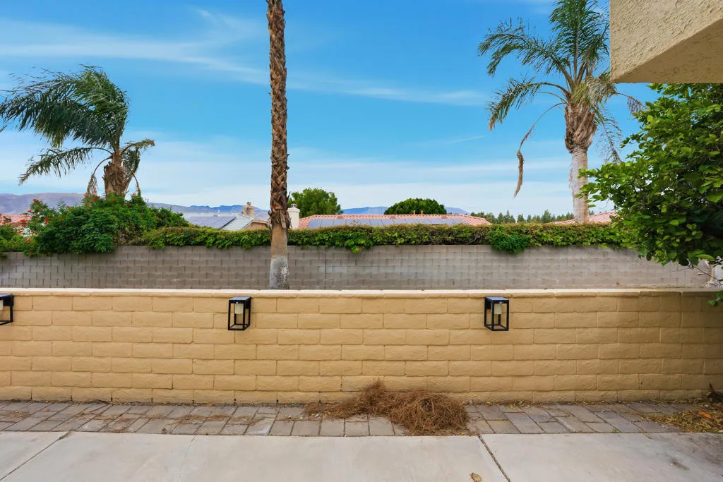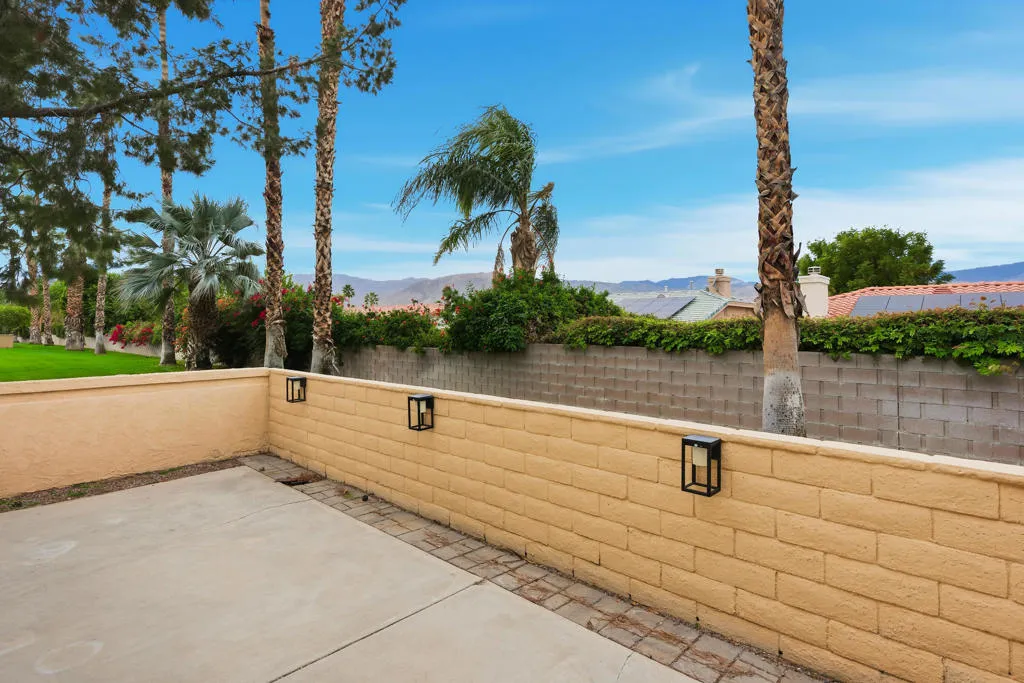 Beautifully Updated Desert Retreat in Casablanca, Palm Desert. Nestled in the heart of Palm Desert, just minutes from the valley's premier shopping, dining, and entertainment, this beautifully updated home offers the perfect blend of comfort and sophistication. Located on a quiet cul-de-sac overlooking a lush greenbelt and panorama views of the San Jacinto Mountains, the residence features two inviting patios ideal for outdoor living and enjoying. Inside, soaring ceilings and skylights fill the space with natural light. Plantation shutters, upgraded lighting, fans, and hardware complement the bright, open design. Laminate wood flooring runs throughout the main living areas, adding warmth and style. The great room features a custom-tiled gas fireplace and direct access to the rear patio. The modern kitchen showcases slab granite countertops, stainless steel appliances, and upgraded soft-close cabinetry. The primary suite is a private retreat with a slider to the patio, a large walk-in closet, and a luxurious bath featuring dual granite vanities, an oversized soaking tub, and a custom-tiled shower with rimless glass enclosure. The guest bath mirrors the same quality finishes with a quartz vanity, custom tile shower, and designer fixtures. A spacious guest bedroom includes mirrored wardrobe doors and custom built-in storage. The two-car garage offers abundant storage space and a dedicated nook for a golf cart. Enjoy the serenity and style of Casablanca--where mountain views, modern upgrades, and resort-style living come together beautifully.