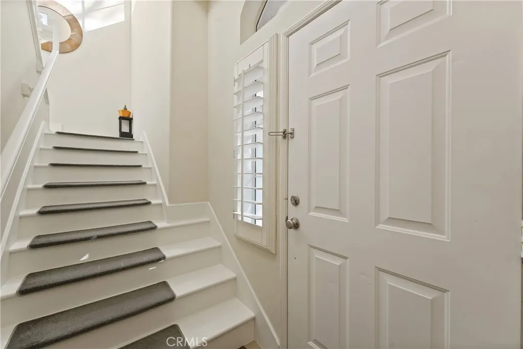 2 Bedrooms Plus a Loft! A beautifully maintained, private carriage end-unit offering a rare blend of natural light, privacy, and functional space. This move-in-ready residence features 2 bedrooms, 2 bathrooms, a loft, and a spacious 2-car attached garage with direct access. Enter through your private entry and climb to your single-level living area, where vaulted ceilings, abundant light, wood floors, plantation shutters, and a cozy fireplace greet you. The open floor plan flows through a generous living room, defined dining area, and a convenient workspace tucked beneath the stairs. The loft area offers tremendous flexibility — ideal for a second office, creative space, or home gym. The primary suite features a large walk-in closet with custom shelving and a generous bathroom. Enjoy afternoon sun on the balcony — perfect for relaxing or entertaining. All appliances are included, and laundry is located in the garage. With no one above or below and only one shared wall, this home offers the best of condo living in a peaceful Rancho Santa Margarita community. The end-unit is especially private, with the front door facing trees and shrubs. As a member of the SAMLARC community, residents gain access to an impressive amenity package — including the man-made Lago Santa Margarita and Beach Club lagoon, multiple pools, and an extensive network of parks and trails.