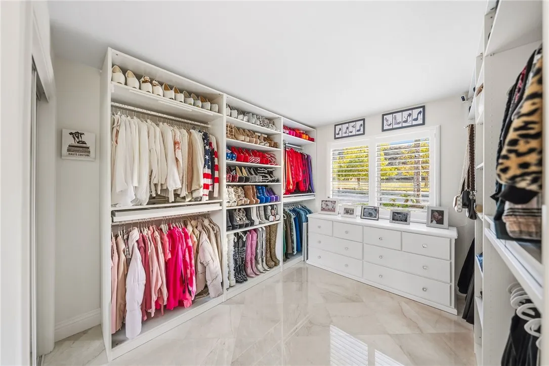 Welcome to this stunning single-story custom floorplan home that perfectly blends luxury, functionality, and style. Situated on a large desirable corner lot, this 4-bedroom, 2.5-bathroom home offers an open and elegant floor plan with marble flooring throughout and meticulous attention to detail. The gourmet kitchen features marble countertops, a new dishwasher, R/O system, walk-in pantry, and abundant cabinetry—ideal for the home chef. The spacious primary suite boasts a marble walk-in shower, separate soaking tub, and a serene retreat-like atmosphere. Enjoy year-round comfort and efficiency with newer dual-pane windows, a new roof, which was installed 3 years ago, and solar. Step outside to your backyard oasis complete with a sparkling pool, relaxing spa, Alumawood patio cover, and a cozy firepit—perfect for entertaining. The property also includes a 3-car garage with vinyl tile flooring and an impressive 25x60 RV garage with 220-volt power, ideal for RVs, boats, or a workshop. Additional highlights include indoor laundry, custom steel gates, underlit concrete steps leading to your front foyer, a gas fireplace in the family room, and a 4th bedroom with a private entrance—perfect for guests or a home office. This highly upgraded home offers the ultimate in comfort, quality, and convenience, this home is a true entertainer’s dream with room for all your toys! And low taxes and no HOA!!! Do not miss this one in a million home today!