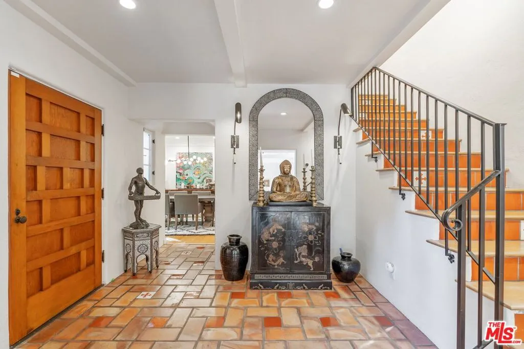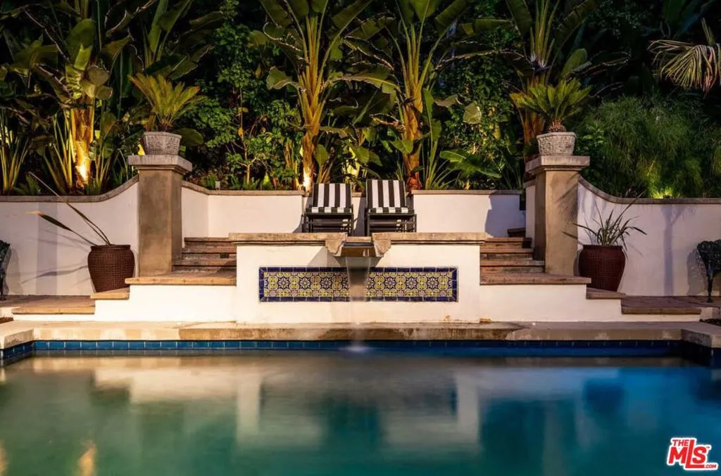 Featured in Architectural Digest and rich with Hollywood history, this reimagined gated and tastefully FURNISHED (unfurnished optional) Spanish villa seamlessly blends modern amenities with timeless old-world charm. Nestled in the hills above the Sunset Strip, the 3-bedroom + Office (4th bedroom), 4-bathroom home is thoughtfully positioned at the heart of the property, offering lush greenery views from every window and French door. The separate 1-bedroom, 1-bathroom guest studio ensures privacy and tranquility for visitors. Set back from the street, the home welcomes you into a formal entryway, leading to an elegant dining room and a living room adorned with beamed vaulted ceilings, a wood-burning fireplace, and an abundance of natural light. The chef's kitchen boasts Caesarstone countertops, a breakfast bar, and a cozy dining area overlooking the backyard, complete with a sparkling pool and spa. Outdoor patios and a covered dining area with heaters create the perfect setting for entertaining. Upstairs, the luxurious owner's suite features Romeo and Juliet balconies, an oversized dressing room, and a spa-inspired bathroom with designer tiles and fixtures. Beautifully designed secondary bedrooms and bathrooms highlight meticulous attention to detail throughout. Additional features include premium fixtures by Waterworks, Lefroy Brooks, and Kallista, Ann Sacks tiles, an outdoor fireplace, surround sound, security cameras, and Nest technology. Parking is a breeze thanks to the 2-car garage and additional off-street parking for 2 cars. This home is an entertainer's dream, offering both sophistication and serenity in a highly coveted location. Minimum Lease term to be 13 months.