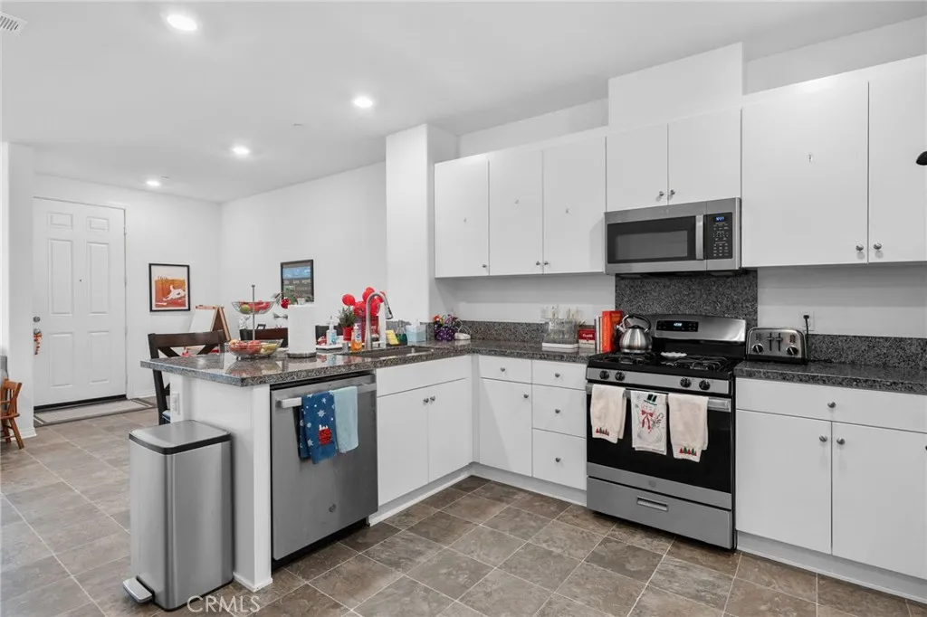 Welcome to this charming condo located in the desirable Aspen Hills community. A gated front courtyard greets you and sets the tone for a sense of privacy and comfort. Step inside to a spacious entryway leading to the main living area featuring a comfortable family room, a bright breakfast nook, and a well-appointed kitchen. The kitchen offers granite countertops, white cabinetry, freestanding range and built-in microwave. The main floor also includes a powder bathroom and a deep storage closet. Upstairs, you’ll find the primary bedroom with an en-suite bathroom that offers dual sinks. A second bedroom enjoys access to a private balcony, and a third bedroom provides additional space for guests, a home office, or hobbies. Another full bathroom and a convenient upstairs laundry room complete the second level. The Aspen Hills community offers great amenities including a refreshing pool and spa, as well as a playground. Located close to Moreno Valley College, shopping, restaurants, and everyday conveniences, this home offers both comfort and convenience. Don’t miss this wonderful opportunity!