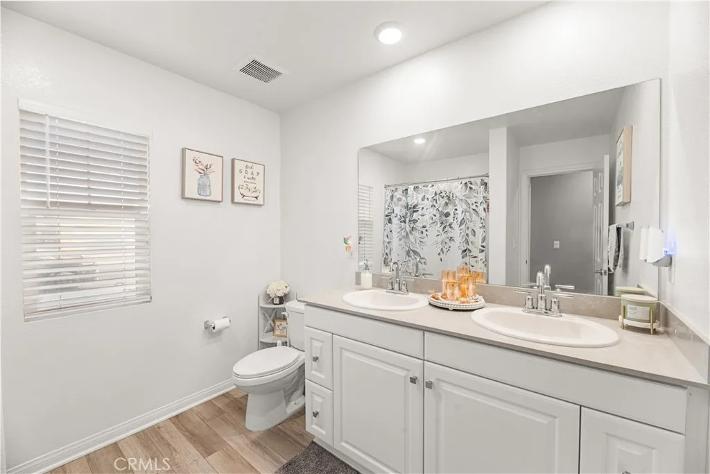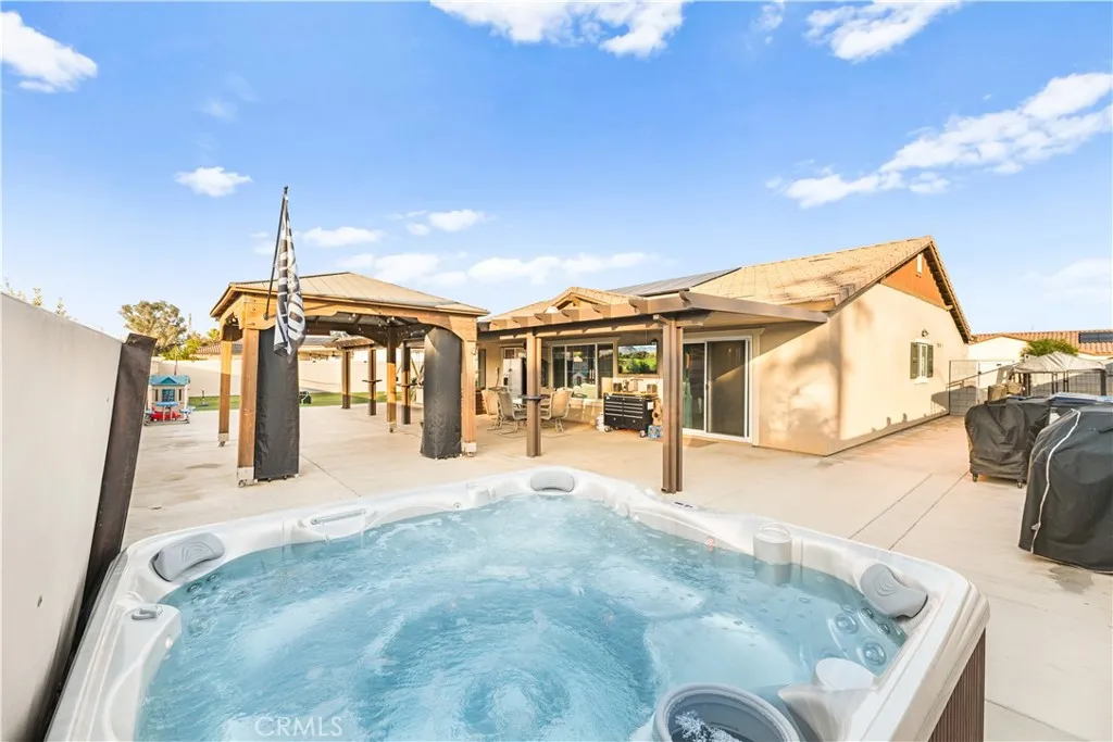 Inside, enjoy a bright and spacious great room that flows seamlessly into a designer kitchen featuring white shaker cabinets, quartz countertops, stainless-steel appliances, and a large center island. The primary suite is a relaxing retreat with dual sinks, quartz vanity, walk-in shower, and generous closet space. Three additional bedrooms provide flexibility for family, guests, or a home office. Step outside to a low-maintenance backyard complete with artificial turf, a large covered patio, concrete entertaining area, and spa—perfect for gatherings or quiet evenings under the stars. VETERANS/ACTIVE DUTY MAY QUALIFY FOR ASSUMING 2.65% INTEREST RATE LOAN.