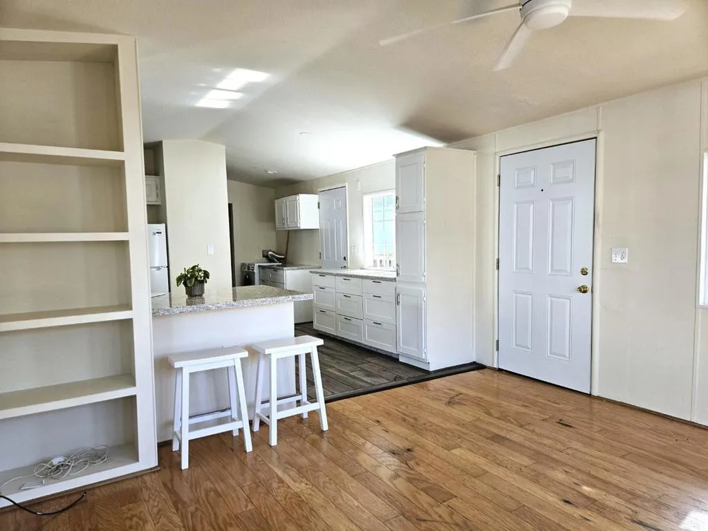 Price adjusted on this adorable beach home! Enjoy seaside living in one of Santa Cruz's most iconic locations! Charming 1-bed home located steps from the Santa Cruz Beach Boardwalk, the Wharf and world surfing at Cowell's Beach! Situated in an all-age, pet friendly, leased-land community, this open & bright home features recent upgrades including interior paint, a new gas range & refrigerator, newer roof, Trex decking and an all-in-one electric washer/dryer unit. Additional highlights include a stylish remodeled bathroom, bay window, ceiling fans, on-demand water heater, and a freshly sealed carport. Space rent for new owner will be $1900/month. Amazing value in the sweetest and only Manufactured Home Park on West Cliff Drive!!