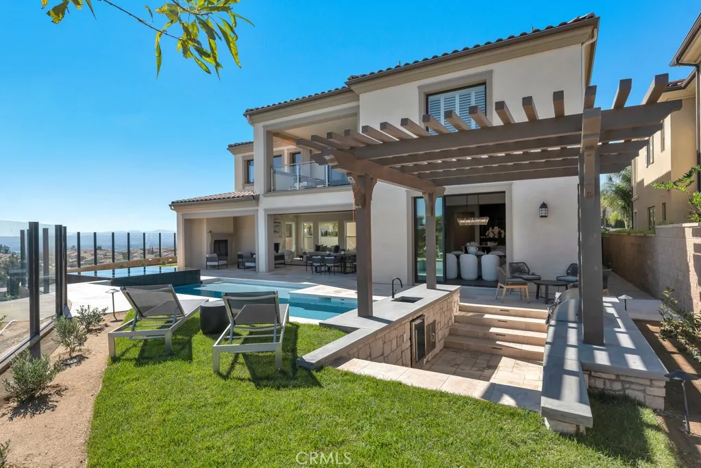 Will consider rent with option to purchase. Stunning luxury estate with panoramic views, ideally positioned at the end of a peaceful cul-de-sac in the exclusive, 24-hour guard-gated Westcliffe at Porter Ranch community. One of the larger properties in the neighborhood, this impressive Spanish Colonial Palisades model by Toll Brothers offers 5,710 square feet of refined living space, featuring 5 bedrooms, 5.5 baths, and an additional flexible room located just behind the kitchen. Fully reimagined in 2025 with a complete interior renovation and landscape redesign, the home showcases dark-stained white oak hardwood floors throughout, natural stone countertops, and luxury appliances from Sub-Zero and Wolf. Expansive multi-panel glass doors open to the patio and courtyard, creating a seamless indoor/outdoor flow ideal for entertaining. The newly completed pool, spa, and outdoor kitchen (finished September 2025) are surrounded by travertine pavers, lush softscaping, and wireless automated pool equipment, delivering a true resort-style experience in a private, tranquil setting. Also listed for sale at: $3,595,000
