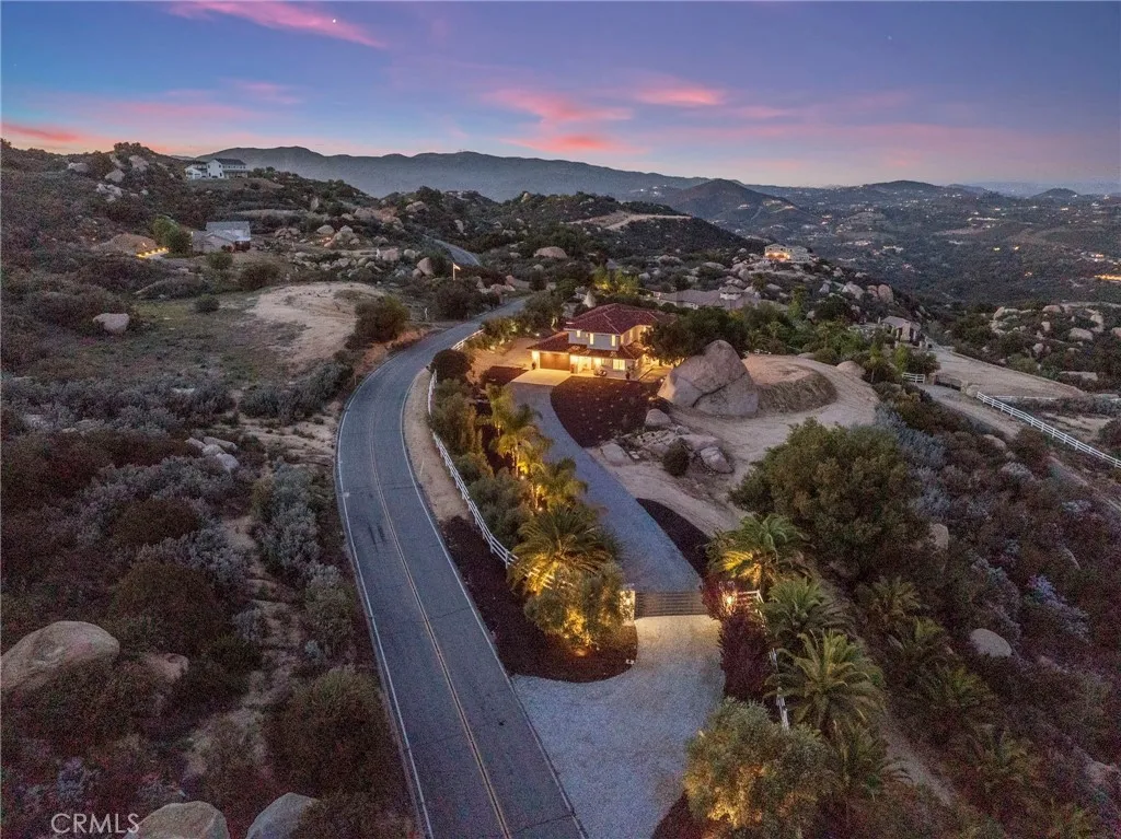 Welcome to Sunrise on Hacienda Dr — your own slice of California countryside living. This isn’t just a home; it’s a way of life, where every sunrise over the hills reminds you that you’re somewhere truly special. Set in the heart of the La Cresta Highlands, this inviting hacienda-style retreat sits on a scenic hillside surrounded by natural rock formations, mature trees, and endless sky. Inside, the home blends warmth, character, and thoughtful craftsmanship. You’ll find smooth Venetian plaster walls and ceilings, rich wood flooring, tall custom doors with detailed millwork, and iron railings that add a touch of rustic charm. Soft lighting and natural textures give the entire space a cozy, refined ranch feel. A double-sided fireplace anchors the main living areas, and large custom bifold doors open wide to the outdoors—ideal for morning coffee, sunset dinners, or simply soaking in the sweeping valley and mountain views. The primary suite is your personal escape, complete with a private deck that feels like a front-row seat to nature. The en-suite bath features a soaking tub, a walk-in shower, and dual sinks—everything you need to unwind. Outside, the land is beautifully landscaped with California oaks, Canary and California palms, olive trees, drought-tolerant cacti, and distinctive rock outcroppings, all bordered by vinyl fencing for a clean, classic look. There’s plenty of usable space to add a pool, barn, or guest house—giving you room to grow, create, and make the property your own.