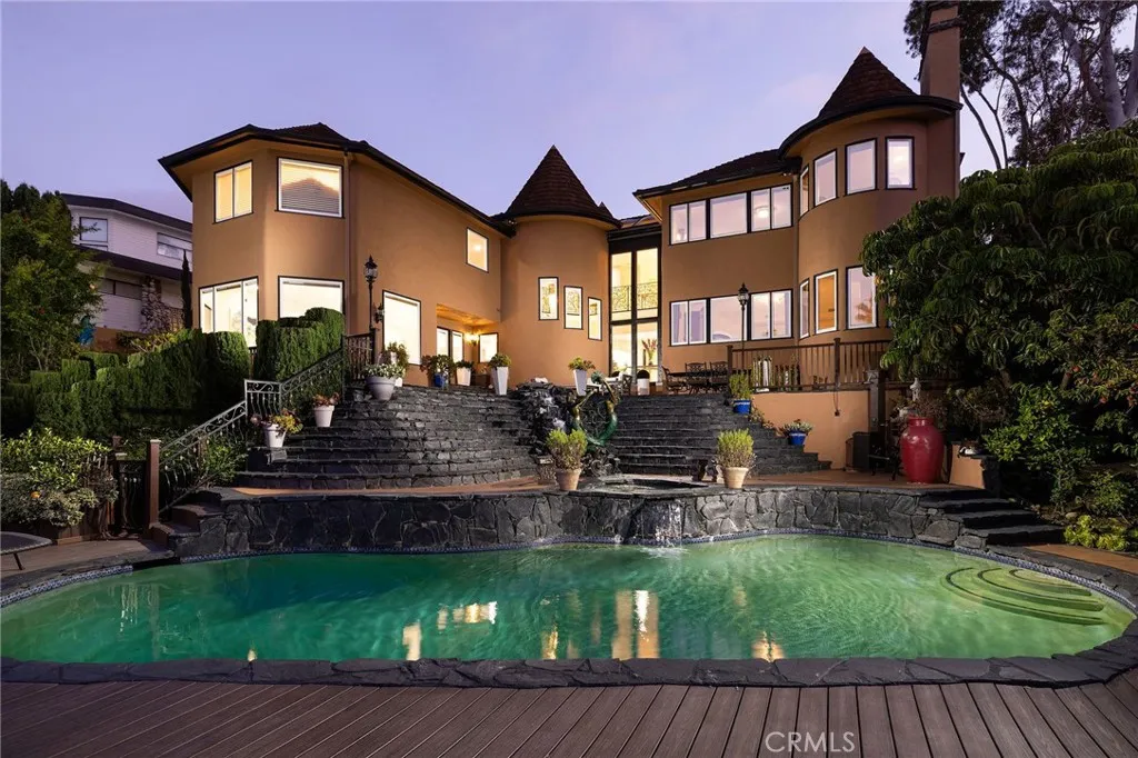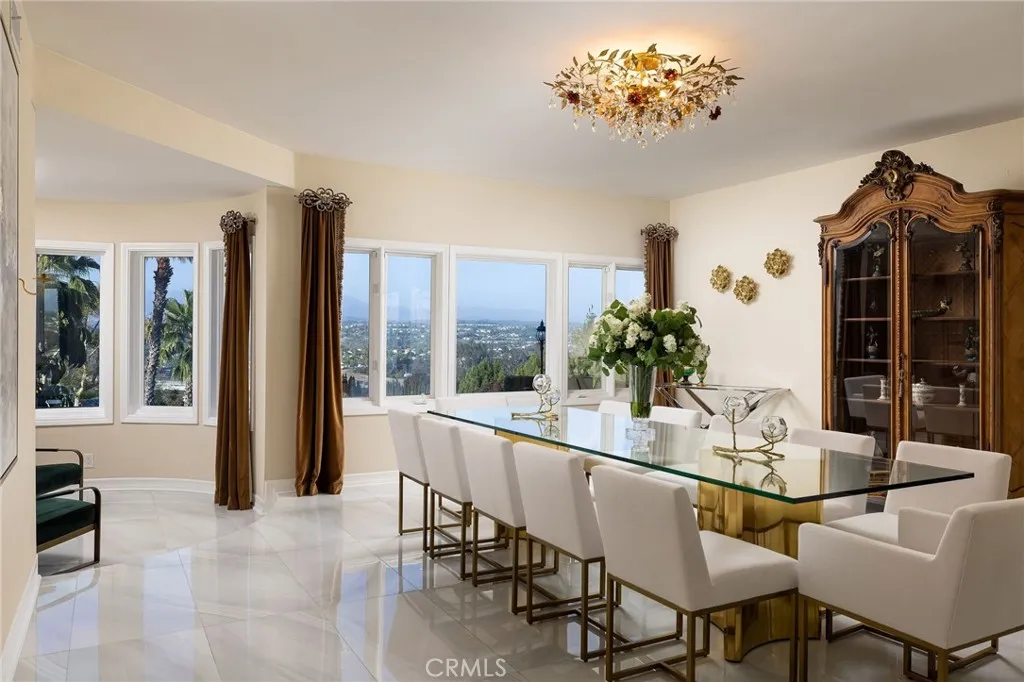 This exceptional custom estate in Nellie Gail Ranch offers true resort-style living, showcasing sweeping mountain, canyon, and city light views from nearly half an acre of private, equestrian-zoned grounds.Beyond stately entry gates, a brick motorcourt welcomes you, complemented by a spacious three-car garage. Grand, oversized double doors open to an interior defined by impressive scale and elegance, spanning over 5,800 square feet. The dramatic foyer is flooded with natural light from floor-to-ceiling windows, while a sweeping wrought-iron staircase leads to the private upper level. Designed for both formal entertaining and everyday living, the home features an elegant dining room and a sophisticated living room with a contemporary fireplace and marble wet bar with wine storage—all framed by breathtaking views. A secondary dining area flows seamlessly into the gourmet chef’s kitchen, appointed with premium Viking appliances, abundant quartz countertops, upgraded cabinetry, and a walk-in pantry. The expansive center island with cooktop and breakfast bar creates an inviting space for casual dining and gathering. Adjacent to the kitchen, the well-appointed laundry room includes upgraded LG front-loading appliances, a utility sink, ample storage, and direct outdoor access. The main level also offers a versatile office or home theater/bonus room, complete with blackout shades, a fireplace, extensive built-ins, and a nearby powder bath. The primary suite is a true private retreat, featuring a sitting area, fireplace, and stunning panoramic views. Outdoors, the terraced grounds are designed for ultimate enjoyment and privacy. Multiple sundecks and patios surround a sparkling pool and spa, all set against a backdrop of endless views and lush, mature landscaping. Expansive Trex decking includes a covered, fully equipped outdoor kitchen and bar—ideal for entertaining—while the lower level offers a gazebo lounge and dedicated TV area. Notable upgrades include a full PEX repipe, Eagle-Light roofing system, and updated windows and doors. Residents of Nellie Gail Ranch enjoy low HOA dues with access to community amenities including security, scenic trails, a swim, tennis, and pickleball club, as well as exclusive neighborhood events. Ideally located near top-rated schools, shopping, dining, major freeways, and world-class beaches, this remarkable property offers an unparalleled blend of luxury, privacy, and convenience. Shown by private appointment only.