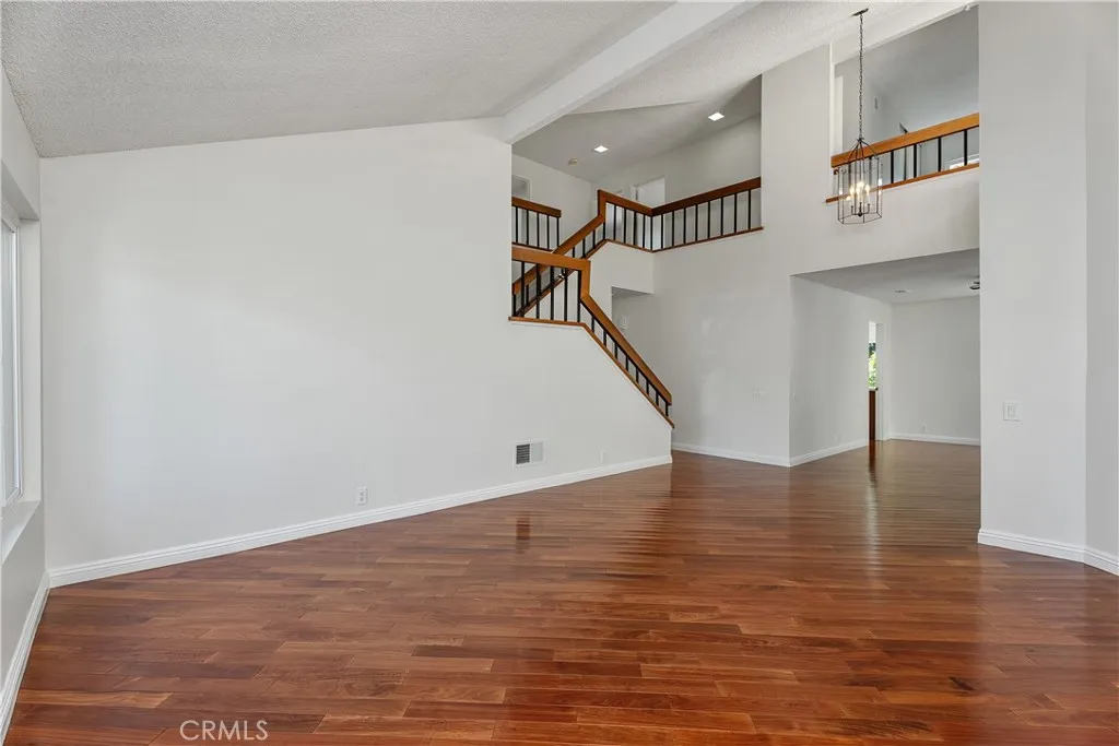 Step into this beautifully upgraded and lovingly maintained single-family home, perfectly nestled in the highly sought-after neighborhood of Park Paseo in Northwood. From the moment you enter, you’ll be greeted by soaring vaulted ceilings and an abundance of natural light that fills the open-concept living spaces, creating a truly warm and welcoming atmosphere.This four-bedroom, two-and-a-half-bath gem offers approximately 2,350 square feet of stylish and comfortable living. The home features elegant vaulted ceilings, a beautifully remodeled kitchen and baths, brand-new windows, and fresh paint inside and out—ready for you to move right in. The spacious living room with its gorgeous hardwood floors flows effortlessly into the formal dining area, which opens to a private, beautifully manicured backyard—perfect for relaxing or entertaining. The heart of the home is the stunning remodeled kitchen, showcasing sleek stainless-steel appliances, modern cabinetry, and elegant countertops. Whether you’re preparing a family meal or hosting friends, this gourmet kitchen provides ample space and style for every occasion. Unwind in the cozy family room by the fireplace, a perfect gathering spot for movie nights or quiet evenings at home. Upstairs, you’ll find high ceilings and a bright, airy primary suite featuring a luxurious bathroom, spacious walk-in closet, dual sinks, and a step-in shower. Additional bedrooms are generously sized, complete with plush carpeting and a beautifully updated guest bathroom with quartz countertops. Step outside to your private backyard oasis, surrounded by lush fruit trees and plenty of room for outdoor dining, gardening, or play.Enjoy resort-style amenities including two pools, a spa, tennis courts, greenbelts, BBQ areas, and a clubhouse. With low HOA dues, low taxes, no Mello Roos, and convenient access to Hicks Canyon Trail, parks, shopping, and dining, this home truly has it all.