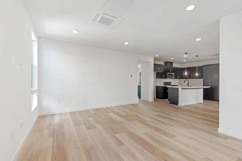 Discover modern comfort and thoughtful design in this newly built Plan 5 townhome-style condominium at Lotus at UrbanOak in South San Jose. This two-story home offers approximately 1,690 square feet with 3 bedrooms and 3 full baths, including a convenient first-floor bedroom and bath ideal for guests, multigenerational living, or flexible work-from-home use. The second floor features an open-concept layout that integrates the kitchen, dining, and living areas, creating an inviting space for daily living and entertaining. The gourmet kitchen includes a gas cooktop, quartz countertops, a spacious island, and modern appliances, with direct access to a covered deck for outdoor enjoyment. The well-appointed Primary Suite provides a walk-in closet and a private bath with dual sinks and a stall shower. Additional features include multi-zone cooling, energy-efficient construction with solar power, a 2-car side-by-side garage, and interior laundry hookups. Community amenities at UrbanOak include a barbecue area, exercise course, playground, dog run, and low-maintenance landscaping. Built by Tri Pointe Homes, this residence offers contemporary living in a location convenient to Silicon Valley employment centers, dining, recreation, and transit options.