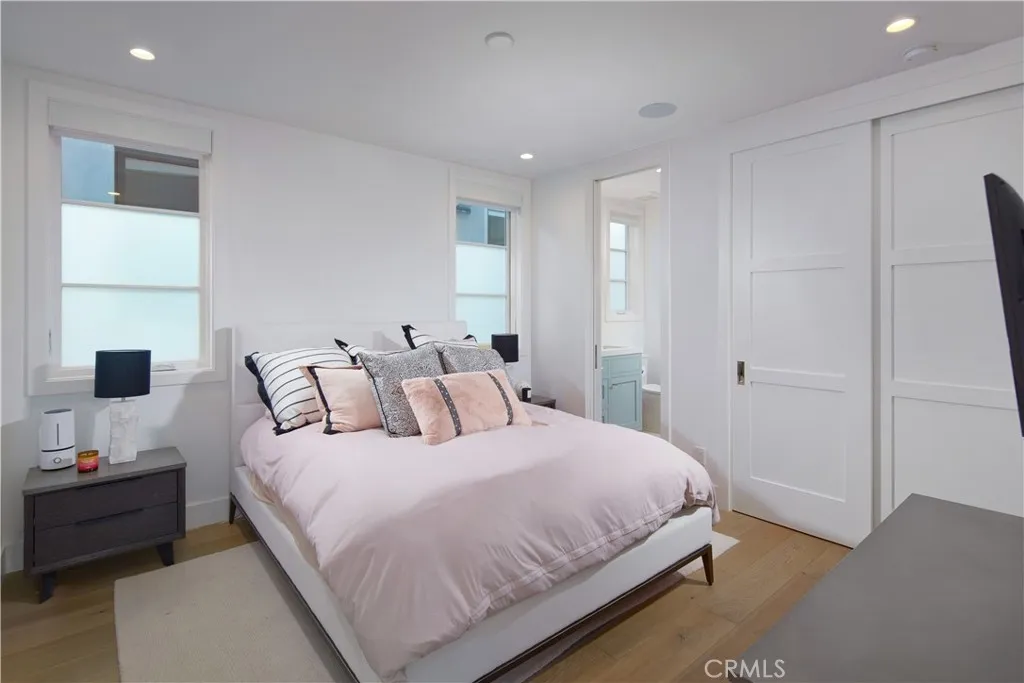 Embrace coastal living at its finest with this sun-drenched, contemporary front-unit residence in the heart of Corona Del Mar. Boasting a thoughtfully designed open layout, the property seamlessly integrates expansive living areas. At the center of this design is the great room, where glass pocket sliding doors create a fluid transition between the indoor living spaces and the charming outdoor environments. An en-suite bedroom, a living room warmed by a cozy fireplace, a dining space, and a chef's kitchen complete the first level. Here, professional-grade appliances meet an oversized island and designer pendant lights, highlighting a breakfast bar perfect for morning gatherings. Accommodating four elegant en-suite bedrooms, the expansive primary suite features vaulted ceilings, a luxurious bathroom, a walk-in closet, and a private balcony for serene moments. Outdoor areas include a welcoming front porch, a side patio with its own fireplace, the balcony off the primary suite, and a spacious rooftop deck. Equipped with a refrigerator and ice maker, the rooftop offers sweeping views of city lights and the gentle sea breeze with minimal obstructions. Superb craftsmanship and meticulous attention to detail exemplify this sleek yet inviting abode. Additional luxuries encompass an office/bonus room, an attached single-car garage, and a prime location close to the bustling shops, pristine beaches, and exquisite dining options of Corona Del Mar. Modern conveniences include a full AV system, automatic window coverings in the living areas, TVs on all decks, and elegant quartz and stone countertops throughout.