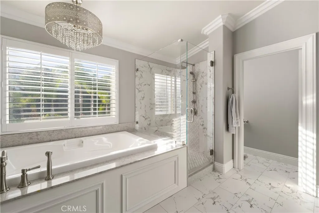 This gorgeous home in Stevenson Ranch is one of a kind! The move-in ready 4 bedroom, 3 bath home includes an office, an open loft, and a formal dining room. It has been recently remodeled with many upgrades including crown molding, custom jambs and base, custom cabinets with roll out shelves and new hardware throughout, custom entertainment cabinets and library shelves in the living room, quartz counter tops and stainless appliances in the kitchen as well as can lights. Custom shutters, bamboo or hardwood flooring and tile flooring are in every room in the home. The laundry room is located on the 2nd floor which includes a utility sink and more custom cabinets. The primary bedroom is large with a spacious bathroom featuring an oversized soaker tub, large shower, large walk in closet with built-in closet organizers. The amazing backyard is ready for you to entertain, with an exquisite pool, jacuzzi with separate heating solar heating system, back yard fireplace, outdoor kitchen that includes sink, BBQ, fridge, kegerator and bar that can sit 6 or more people. You must see this home in person to appreciate all it has to offer!