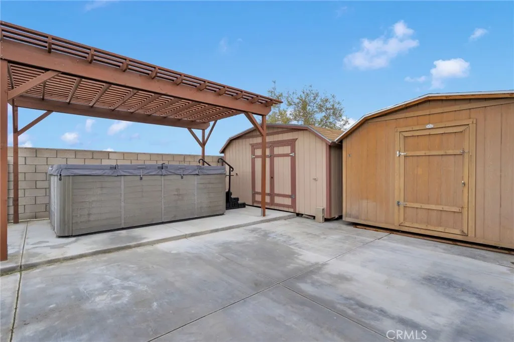 MOVE IN READY! NO HOA! This home is sure to check ALL the boxes! Beautiful open concept home featuring six bedrooms and four bathrooms, including two main floor bedrooms ideal for guests or multigenerational living. The upgraded kitchen showcases abundant storage, quartz countertops, stainless steel appliances, a 36 inch six burner stove with range, in counter microwave, two pantries, pot and pan pull out drawers and soft close cabinets and drawers throughout. Remodeled bathrooms and the primary suite offers a spacious retreat with a large bedroom, an oversized walk in closet, and a beautifully upgraded primary bathroom that includes a very large walk in shower featuring two showerheads, one of which includes a multi function shower panel system. The home features recessed lighting, new luxury vinyl flooring throughout, new energy efficient windows installed throughout the entire house along with solar window shades. Additional upgrades include a tankless water heater and a swamp cooler. The exterior includes a gated swim spa, fully landscaped front and backyard, two large storage sheds, a new block wall surround, space for toys and RV parking with a dump hook up. The property comes with solar and battery backup, with solar agreements to be assumed by the buyer. Conveniently located near the 15 Freeway, shopping, dining, and a community park, this home blends comfort, efficiency, and modern upgrades in a prime location.