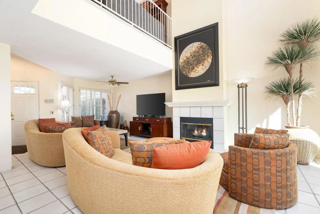 This Bright, Beautiful, 4-bedroom, 3 full bathrooms, Townhome is the perfect Family & Friends Vacation Resort! Situated on the highly desirable Vista Royale Circle on the 17th Hole of Desert Falls Scottish Links Championship Golf Course, and within a 40 second walk to 2 Jr. Olympic Swimming Pools. With new Quartz Counter Tops, New Lighting Fixtures, Kitchen Appliances, and more....A guest bedroom and full bath on the first floor, private laundry room and a family room to capture enjoy precious time with family and friends. The spiral staircase leads up to the second floor with 3 additional Bedrooms including the Primary Ensuite, with a large walk-in closet, bathroom with dual vanities, separate tub and shower and a private patio with panoramic views of the golf course and mountains. Looking for quiet or ready to entertain this home has it all. Whether taking in the morning sunrise or just ready to unwind from a long day of golf or tennis this lovely home checks all the boxes. Desert Falls Scottish Links Championship Golf Course is rated as one of the top 10 courses by the SCPGA and awarded a 4 -star rating from Golf Digests ''Best Places to Play''! You can choose to purchase a Seasonal Membership or pay as you play. Desert Falls Country Club is centrally located in the middle of the valley within walking distance to restaurants and shopping and only a few miles to top entertainment venues including Acrisure Arena, Agua Caliente Spa & Casino, the McCallum Theatre, The Living Desert and El Paseo: a 2-mile boulevard of upscale Galleries, Boutiques, and fine Dining Restaurants nearby. Enjoy Tennis, Pickleball, Fitness Center, 29+ Pools & Spas and a Very Active Club! Call today to book your Vacation Stay!! NOTE: Monthly rates vary with Season.