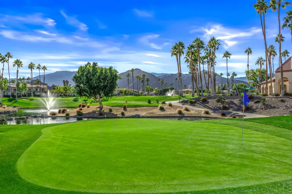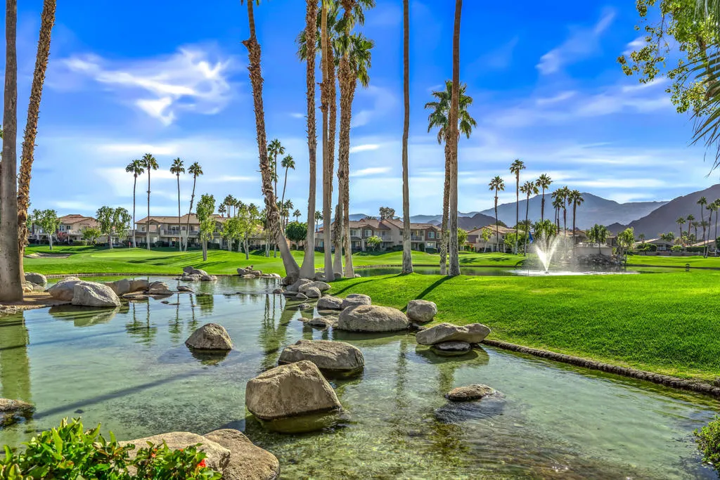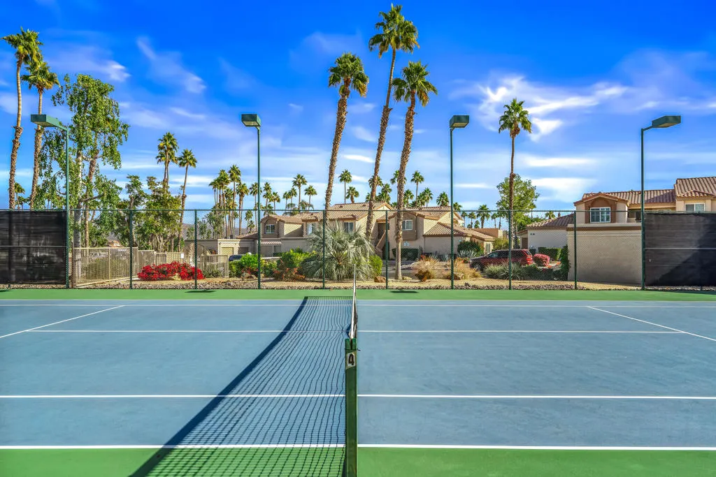 Charming, quiet 2-Bedroom, 2-Bath Condo with Stunning Views on a 3-Par Walking Golf CourseThis completely remodeled 2-bedroom, 2-bathroom condo offers the perfect blend of modern comfort and serene living, all while situated on a picturesque 3-par walking golf course. Enjoy fabulous 180-degree views from the oversized balcony, right from your home. Steps to the pool, tennis courts and great walking neighborhood. Bright and Open Floor Plan with spacious living areas with recessed lighting in the kitchen and ceiling fans throughout.Featuring quartz countertops throughout, recessed outlets under the cabinets, along with under cabinet lighting, and updated stainless steel appliances, perfect for both casual meals and entertaining. Upgrades all around including soft close drawers and cabinets throughout. Custom built-in cabinet and storage that adds both style and functionality in the dining area. The main suite is complete with a large soaker tub, ideal for unwinding after a day on the course. Enjoy breathtaking, unobstructed views from your large upper patio. Includes select pieces of stylish, functional furniture.Newer washer/dryer, modern fixtures, and Nest smart thermostat for ultimate comfort and energy efficiency. A combination of tile and carpet throughout for a modern yet cozy feel. Additional storage cabinet in the garage for all your seasonal items or sports gear.Step outside your door and enjoy the 3-par walking golf course at your leisure.This condo offers not only a beautifully updated living space but also a lifestyle that many dream of--peaceful walks on the golf course, easy access to outdoor recreation, and a quiet retreat with scenic views. It's the perfect home for anyone looking for both comfort and convenience in an idyllic setting.Oh.....and right across the street from the famous Indian Wells Tennis Gardens!