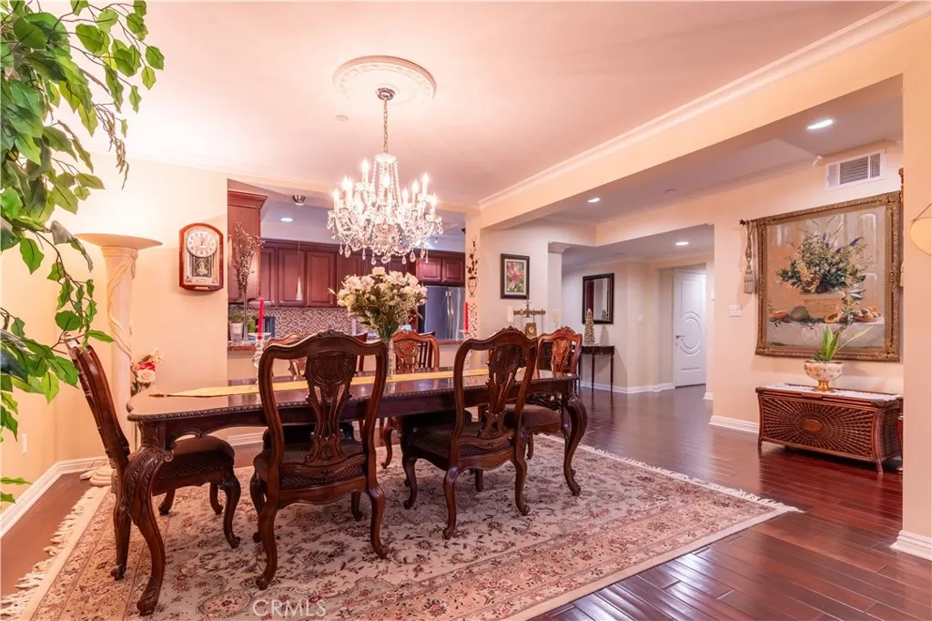 Welcome to Sierra Heights, a coveted 24-residence boutique building in prime Sherman Oaks. This rare end unit delivers approx. 1,800 sq ft with 3 bedrooms and 2.5 baths, exceptional privacy (only two homes in this section), and just one shared wall. A formal double-door entry opens to an expansive great room with recessed lighting, crown/base moulding and rich hardwood floors that lead to a wide covered balcony with treetop outlooks. The entertainer’s kitchen features granite counters, full-height mosaic tile, pendant lighting, designer cabinetry, dual sinks and stainless appliances including JennAir range & microwave, Bosch dishwasher and GE refrigerator, plus breakfast-bar seating. The king-size primary suite offers plantation shutters, a custom walk-in closet and a spa bath with dual sinks, marble counters, soaking tub and separate glass shower. Two additional generous rooms (ideal bedrooms/office/gym) are served by a beautifully tiled hall bath, with a stylish powder room for guests. In-unit stackable laundry, central HVAC and abundant storage throughout. Community amenities include controlled access, elevator, meeting room, guest parking, two assigned garage spaces for this unit and a private approx. 6’x7’ secured storage room. HOA dues are about $680/mo and include water, EQ insurance and common-area maintenance. All on a quiet, tree-lined street moments to Ventura Blvd cafés, the Galleria, Fashion Square and easy 101/405 access. Turnkey, spacious and beautifully finished, don’t miss it.