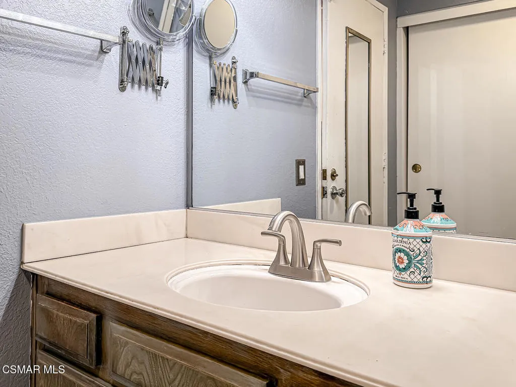 Discover a truly unique end unit surrounded by lush greenery, providing both privacy and serenity. Nestled on the desirable west side of Simi Valley, this lovely home is just a stone's throw away from the community pool, making it perfect for those sunny California days!Step inside to find vaulted ceilings that create an open and airy ambiance. A sliding door conveniently opens into a versatile third bedroom, perfect for guests or a home office. Upstairs, you'll find a spacious loft, adding even more functionality to this well-designed layout.The three beautifully remodeled bathrooms showcase modern finishes that are sure to impress. The entire home is recessed and bright to offer both comfort and style. House also has a loft. Additional features include a one-car garage and a designated carport, giving you ample parking space. With full washer and dryer hookups in the unit, laundry is a breeze!Enjoy the fantastic amenities provided by the community with low monthly HOA dues. This is a rare opportunity to own a stunning property in a sought-after location. Make this dream home yours today!