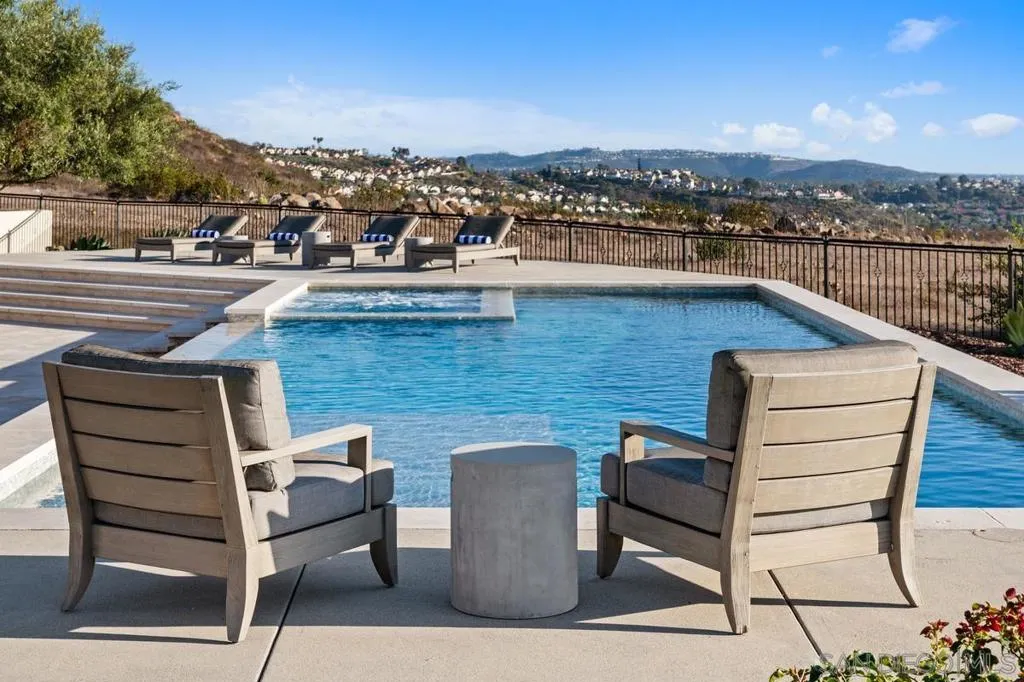 A rare opportunity to own a private Italian-inspired villa, extensively remodeled to blend modern luxury with timeless Tuscan elegance. This exceptional home in one of San Diego’s most exclusive gated golf communities offers unparalleled panoramic ocean and sunset views, complete privacy, and expansive living spaces ideal for entertaining. Seamlessly connect indoor and outdoor living through disappearing glass doors opening to covered patios overlooking a sparkling vanishing-edge pool and beautifully landscaped grounds. Features include a convenient elevator, separate guest casita, and dedicated movie theater. The primary living area spans one level, complemented by a stunning circular staircase leading to an upper office with breathtaking ocean views and a versatile lower level perfect for a playroom, wine cellar, or personal retreat. Set atop the coveted Santaluz community, enjoy access to the Rees Jones-designed golf course, 2,000+ acres of open space, scenic trails, and two exclusive clubs offering dining, fitness, spa, and tennis amenities. Centrally located near I-15 and I-5, this extraordinary property offers the ultimate Southern California lifestyle with sophistication, charm, and convenience.
