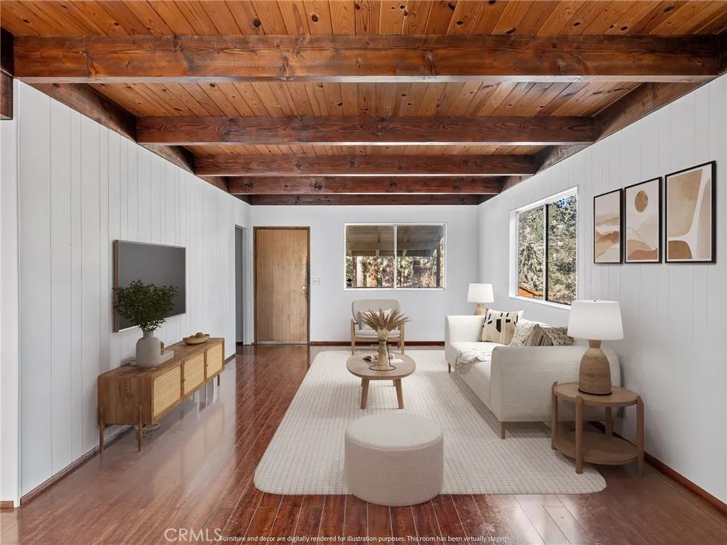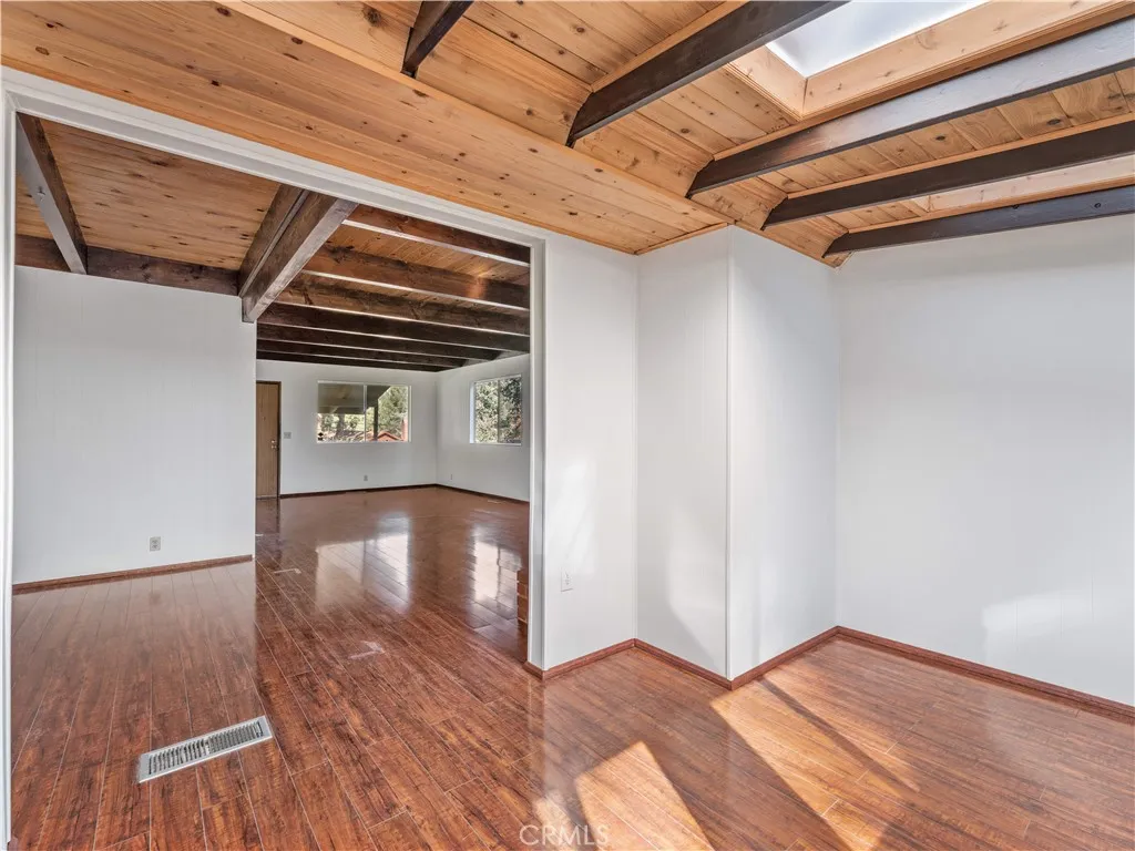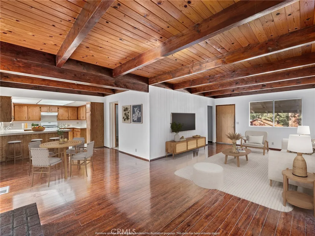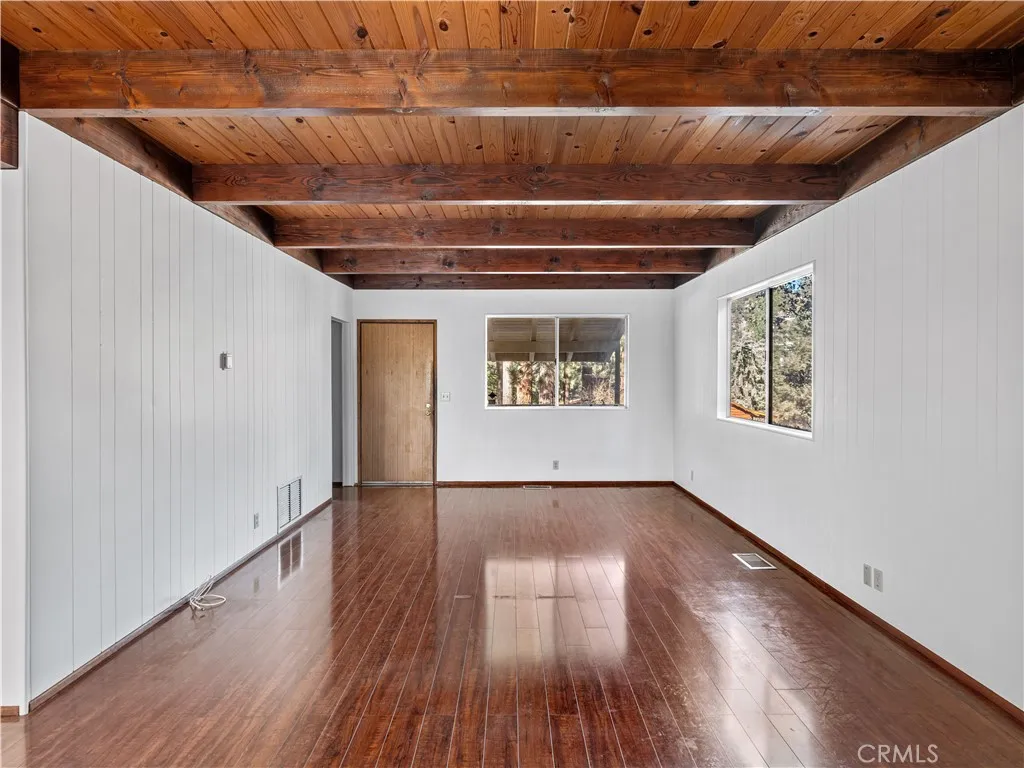 Big price improvement! Check out this spacious 3 bedroom 2 bath single family home in the mountain community of Wrightwood offering 1,836 +/- square feet of living space. This 2-story home was just refreshed with new white interior paint downstairs (photos updated) and is incredibly inviting upon arriving with its raised and oversized front covered deck/porch to enjoy the smell and sounds of the mountains. The lowest ground level has a workshop space that can easily be converted back to the single car garage from when the home was built. You enter the home into a large living room that wraps around to the dining room, rear sun room and full kitchen. Additionally there's one bedroom and full bathroom downstairs as well as the laundry room with storage. Upstairs are two good sized bedrooms that benefit from extra large closet spaces. This home can retain its charm and be updated by updating interior paint and flooring. The backyard offers a fenced backyard with several pine trees and a serene, quiet environment to call home. The home is located not too far from downtown Wrightwood with great places to shop and eat as well as the ski resort. Wrightwood is a perfectly placed small community that offers convenient access to highways and freeways for commuting.