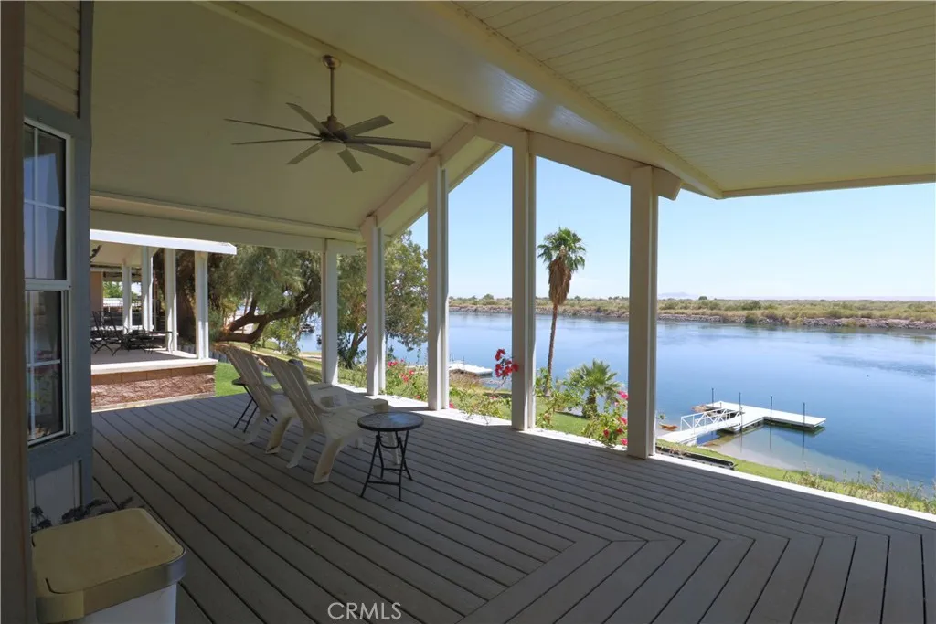 Seller offering financing — inquire for details. Enjoy year-round recreation on the Colorado River with endless desert trails right outside your door. Whether you're boating and floating through summer or savoring calm winter mornings on the water, this stretch of river delivers all four seasons. The surrounding desert opens up thousands of acres for SXS riders, dirt bikes, Jeeps, and off-road enthusiasts — a rare combination of river living and wide-open exploration. Set above the Colorado River down a private road with easy access to multiple launch ramps, this updated 2-bedroom, 1-bath manufactured home sits well away from the noise and crowds of park communities. Wide-open river views, generous usable space, and room for family, friends, and pets round out the setting. Inside, you'll find fresh plank-style wood-look linoleum flooring, plush bedroom carpeting, and blackout shades throughout. A brand-new central AC and heating system (installed August 2025) is paired with a smart Nest thermostat — perfect for effortless weekend arrivals. The oversized detached garage is a true standout, featuring a built-in workbench, abundant storage, a garage refrigerator, extensive lighting, and two double roll-up doors (front and side) for easy in-and-out access. Ideal for vehicles, river toys, and gear — with ample additional parking for guests and RVs. A large wraparound patio finished with Alumawood and Trex decking creates a comfortable outdoor living space overlooking the river. From this elevated vantage point, views stretch all the way to Poston, Arizona — a front-row seat for desert weather rolling in and the perfect place to unwind after a day on the water. Surrounding grassy areas give kids and dogs plenty of room to roam. Located 20 miles north of Blythe, 40 miles south of Parker, and 70 miles from Lake Havasu City — secluded, yet connected. Please note: Property sits on land leased from the Colorado River Indian Tribes; annual lease is $20,000 beginning January 1, 2026. Dock in front belongs to the neighboring property. Seller is a licensed California real estate agent.