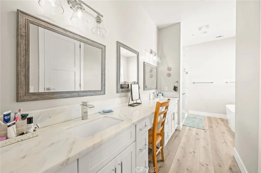 Luxury Farmhouse Living, Entertainer’s Pool, Wine Cellar & Mountain Views! Welcome to this stunning custom 4,000 SF 6 BR + Loft (used as 7th BR) / 4 BA home just west of historic Old Town Murrieta with gorgeous mountain & creek-bed views. Single-level living with large upstairs loft and seamless indoor-outdoor flow. Chef’s Kitchen features custom all wood soft-close cabinetry, 6-burner double oven range with 48” hood & pot filler, 5’x10’ Bianco Carrara marble island with wine fridge, microwave drawer, and storage galore. Enjoy your own wine tasting room with 11’x11’ wine cellar, perfect for entertaining. Open the 20’ moving glass wall to 440 SF of covered outdoor living space with misters, fan, & surround sound. Relax in the pebble-tec pool & spa with top of the line slide and secure safety fence. Home includes premium LVP flooring, energy-efficient windows, marble bathrooms, and fire resistant siding. Spacious primary suite with barn doors, walk-in closet, dual rain head shower, soaking tub & bidet. Property upgrades include state of the art well pump with artesian spring water, fruit bearing trees, raised bed garden, predator proof fencing, chicken coop with established laying hens (optional), and solar mounted security system. Loft is enclosed with locking door and plumbed for kitchenette or bath. Zoned for agriculture, so bring your animals! 3-car garage (25’x33’x13’H) fits boat or small RV + RV parking. Two tankless water heaters, advanced fire abatement sprinkler system, and neighbors who “mind their own business.” This property perfectly combines luxury, privacy, and the charm of country living, minutes from town!