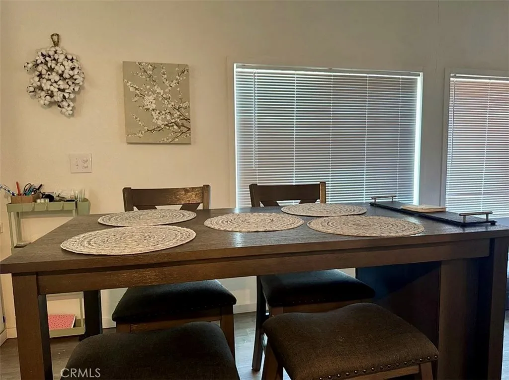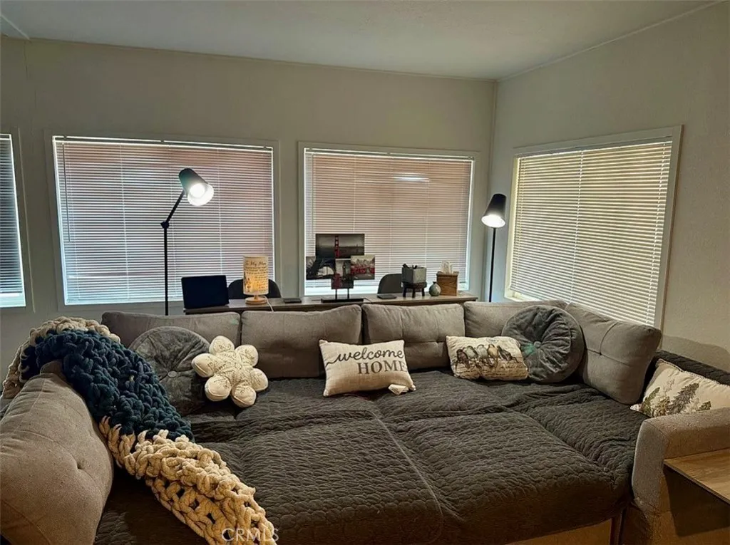 Beautifully updated 2-bedroom, move-in ready home located in a quiet, well-maintained community. A perfect low-elevation getaway for Big Bear residents, offering warmer winters while staying close to the mountains. New wood-style laminate flooring and fresh interior paint were completed just two years ago. Home is preferred to be sold furnished, with flexibility for buyer needs. The oversized living room features a 75” mounted TV, electric fireplace, and interchangeable sectional. An open dining area includes built-in cabinetry for extra storage. The fully remodeled kitchen offers stainless steel appliances, a premium dishwasher, deep wide sink, ice-maker refrigerator, custom stone-style counters, expanded coffee/bar nook, and a pantry. Newer gas washer and dryer are included. The spacious primary bedroom easily fits a king-size adjustable bed and includes custom handmade closet systems. The second bedroom offers two queen beds and ample storage. Both bedrooms feature large TVs and desks. Central AC and heat are well maintained, with excellent condition jacks underneath the home. The community pool is just steps away. Enjoy outstanding curb appeal with a fully fenced, private yard, artificial grass, mature maintained trees, and water paid by the park owner. A large covered porch, generous carport, and storage shed complete the exterior. Ideally located 35 minutes from Big Bear, five minutes from Apple Valley High School and Alta Vista Learning Center, and near a newer gas station on Central Rd. With shopping and dining continuing to grow along Bear Valley Rd, convenience is right at your doorstep. Call today to schedule a showing!