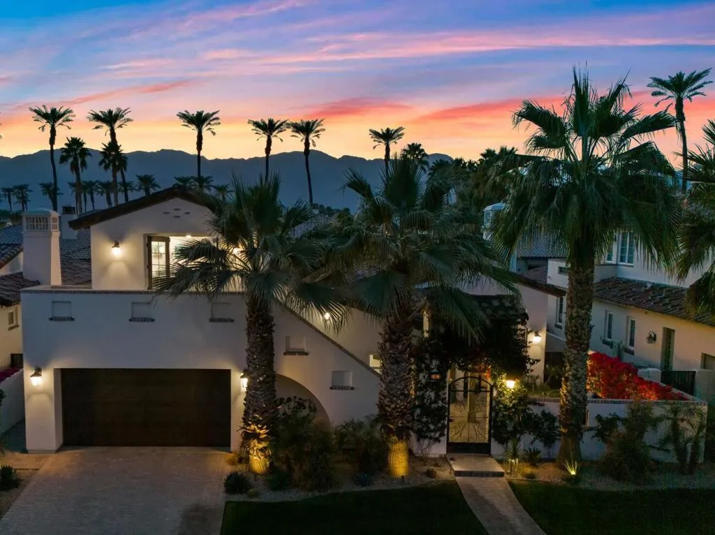 CITRUS CLUB: **OPEN THIS SAT 2/28 & SUN 3/1 11:00AM-1:00PM. COME SEE!!** Citrus Club stunner! Enchanting, chic Mediterranean-style retreat with fresh, airy vibe, fantastic floor plan, captivating indoor/outdoor flow, ideal location, private setting. 4 spacious ensuite bedrooms (including LARGE CASITA guest suite), 6 baths (4 full, 2 half). Fabulous great room with gourmet kitchen, fireplace, soaring ceilings, glass pocket doors to lanai with saltwater dipping pool/spa, BBQ island, lush landscaping. NEWER CONSTRUCTION -- built in 2016 and maintained to perfection. MOVE-IN READY!Luxurious primary suite features gracious spa-inspired bathroom, oversized closets, French doors to pool. Delightful, spacious casita guest suite (675 sq ft) with separate entrance, bedroom, office/sitting room, bath, 2 balconies. All 4 bedrooms are generously proportioned, ensuited, and privately set, with walk-in closets and French doors to outdoors.Private, tranquil setting at the end of a cul-de sac, surrounded by allees of towering palms. Fully gated grounds, IDEAL FOR DOG OWNERS. Steel frame construction - the absolute best - very strong and so expensive they no longer build this way. Located just minutes from the clubhouse of the beautiful Citrus Club, which is affiliated with the historic 5-star La Quinta Resort & Club. The Citrus HOA offers breathtaking grounds, abundant citrus trees, low HOA fees and 24-hour security, all within easy access of world-class golf, tennis, equestrian, dining, and shopping.THIS IS A MUST-SEE HOME!