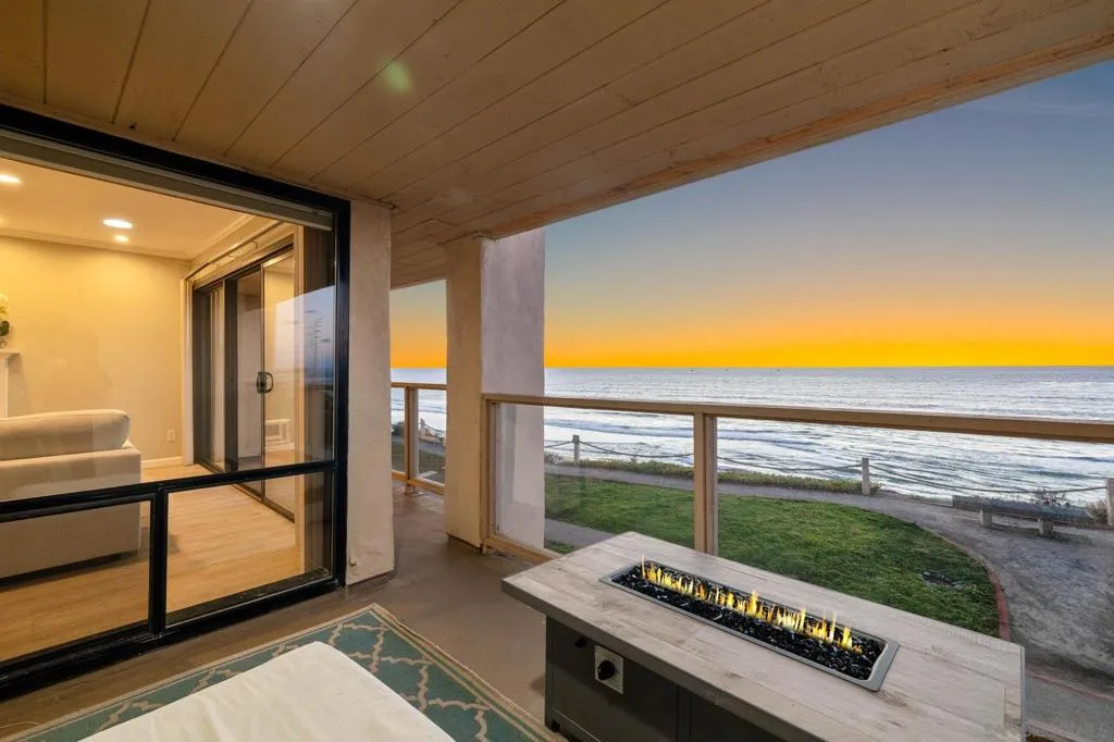 Elevated OCEANFRONT location with fantastic Pacific Ocean views. This 2 bedroom 2 & 1/2 bathroom, 1,375 sq. foot condo provides coastal elegance just steps to beach access and close to Solana Beach shops and restaurants. Great single level, open concept floor plan. Primary suite is generous with a bonus office and walk-in closet. Entertain family and friends in the updated kitchen with newer high efficiency appliances designed to blend modern luxury with comfort and style. Walks on the beach, surf, swim, pickleball or tennis followed by a relaxing dip in the pool and spa plus sunsets from your deck. This unit carries a Short Term Rental Permit! Elevated OCEANFRONT location with fantastic Pacific Ocean views. This 2 bedroom 2 & 1/2 bathroom, 1,375 sq. foot condo provides coastal elegance just steps to beach access and close to Solana Beach shops and restaurants. Great single level, open concept floor plan. Primary suite is generous with a bonus office and walk-in closet. Entertain family and friends in the updated kitchen with newer high efficiency appliances designed to blend modern luxury with comfort and style. Walks on the beach, surf, swim, pickleball or tennis followed by a relaxing dip in the pool and spa plus sunsets from your deck. This unit carries a Short Term Rental Permit!
