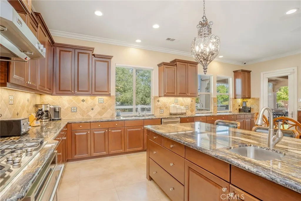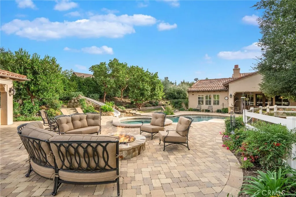 A Sprawling Single-Story Estate with Resort-Caliber Grounds! Welcome to one of the most desirable estates in The Preserve in Sand Canyon—a gated, prestigious community known for privacy, beauty, and luxury living. Set on 1.18 acres, this extraordinary single-story home offers 3,841 sq ft of sophisticated living space with 3 bedrooms, 4 bathrooms, and a dedicated office, plus two exceptional detached structures that elevate the lifestyle experience. The ~600 sq ft detached casita sits above the oversized 3-car garage—an ideal space for multi-generational living, guests, or an incredible studio retreat. A second detached structure, originally a 2-car garage, has been transformed into an impressive ~400 sq ft studio/flex space and can easily convert back to garage use if desired. Designed for those who love to entertain, the interiors are warm, inviting, and seamlessly connected to the outdoor spaces. The expansive covered patio features an outdoor kitchen, built-in heaters, fireplace, TV, and speakers—creating an effortless extension of the home. Step into your very own private resort: a sparkling pool with slide and water features, a cabana with fireplace, kegerator, pool bath, and outdoor shower, plus a fire pit and built-in audio throughout the yard. The property is packed with fun—bocce ball court, basketball/pickleball court, a professionally designed putting green with “Caddy Shack” storage, oak tree grove, culinary garden, and fruit trees—all illuminated with thoughtfully designed landscape lighting. Modern conveniences complete the package: owned solar panels, solar pool heating, backup generator, and a comprehensive security system with cameras inside and out. Every inch of this estate reflects pride of ownership and the discerning taste of those who appreciate refined living, privacy, and a true indoor–outdoor lifestyle. This is more than a home—it’s an experience.