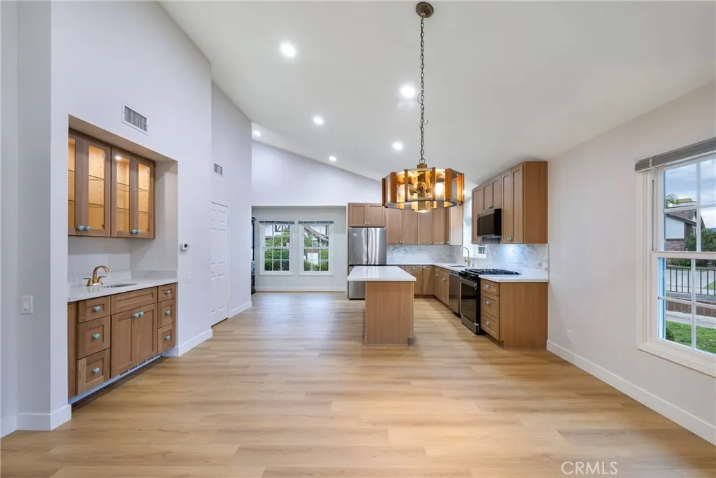 Beautifully updated and thoughtfully redesigned, this Anaheim Hills home offers more than $100,000 in recent improvements and a fresh, open feel throughout. The kitchen is the centerpiece of the renovation, where the original low ceiling was raised to a vaulted design, giving the space a bright, airy atmosphere that immediately transforms the heart of the home. The wall between the kitchen and dining room was removed as part of a well-planned interior update that expands the kitchen’s footprint and creates an easy, open connection between the main living areas. Just off the dining area, a charming atrium brings natural light into the home and creates a peaceful spot for morning coffee, plants, or outdoor relaxation.