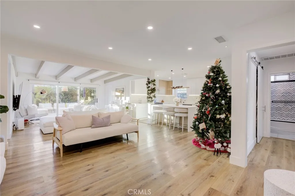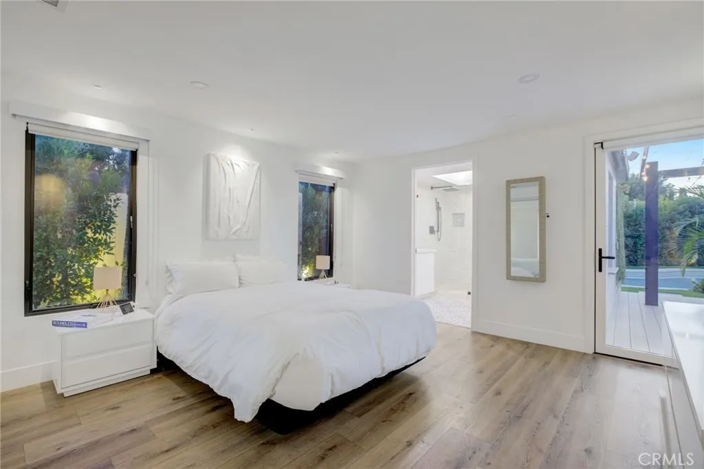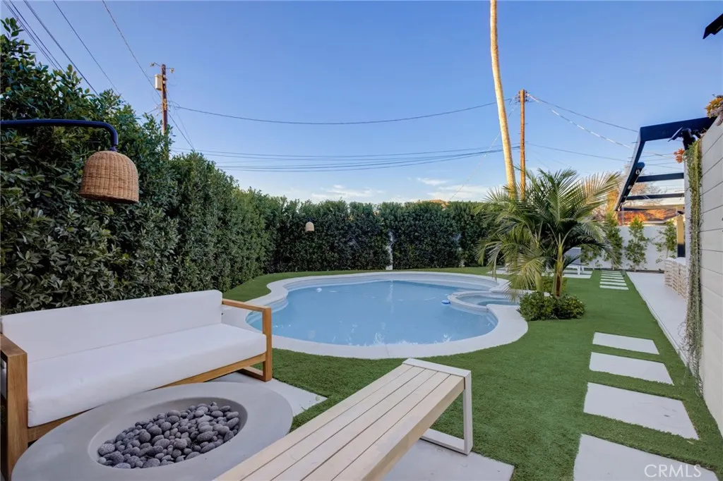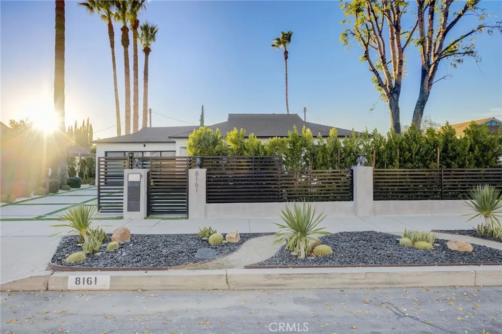 Welcome to 8161 Encino Ave, a stunning contemporary haven in Northridge, California. This 4-bedroom, 3-bathroom masterpiece has undergone a complete remodel, embodying modern design and sustainable living. As you enter through the secure and gated entrance, you'll notice the low-maintenance ficus trees enveloping the property for ultimate privacy. The exterior showcases a Santa Barbara finish, complemented by larger windows that flood the interior with natural light. For the environmentally conscious, this home is equipped with solar panels and a Tesla charger. The landscaping has been thoughtfully designed with turf replacing traditional grass, minimizing maintenance. Exterior gate and lighting are seamlessly controlled via wifi, with lights automatically illuminating the surroundings at sunset and gracefully dimming at sunrise. Security and convenience take center stage with smart home features, including Ring security cameras, main door smart locks, and climate control accessible through a user-friendly phone application. The garage, complete with a new door, offers a work station, ample shelving, and storage. The entire home and garage have been insulated, ensuring comfort in all weather conditions. Step into the backyard oasis where a heated pool and jacuzzi await. The pool area, featuring a natural gas firepit, is controllable through the smart home application. An entertainer's dream, the backyard boasts an expansive deck with a retractable sunbrella, while one of the bathrooms provides direct access for guests or a quick post-pool dry off. Inside, the home exudes luxury with recessed lighting and art gallery-style lights. The kitchen has been tastefully remodeled, showcasing an island for dining and socializing. White oak accents seamlessly connect the spaces, while modern roller windows offer privacy and blackout options. Experience a touch of Colombian charm with imported rustic lamps that create a warm and inviting ambiance in the backyard. The sliding stacking doors leading to the outdoor space enhance the seamless indoor-outdoor living experience. Whether you seek a space for entertaining or unwinding, 8161 Encino Ave sets the stage for a lifestyle where luxury, technology, and comfort converge in perfect harmony. Welcome to your contemporary retreat in the heart of Northridge.