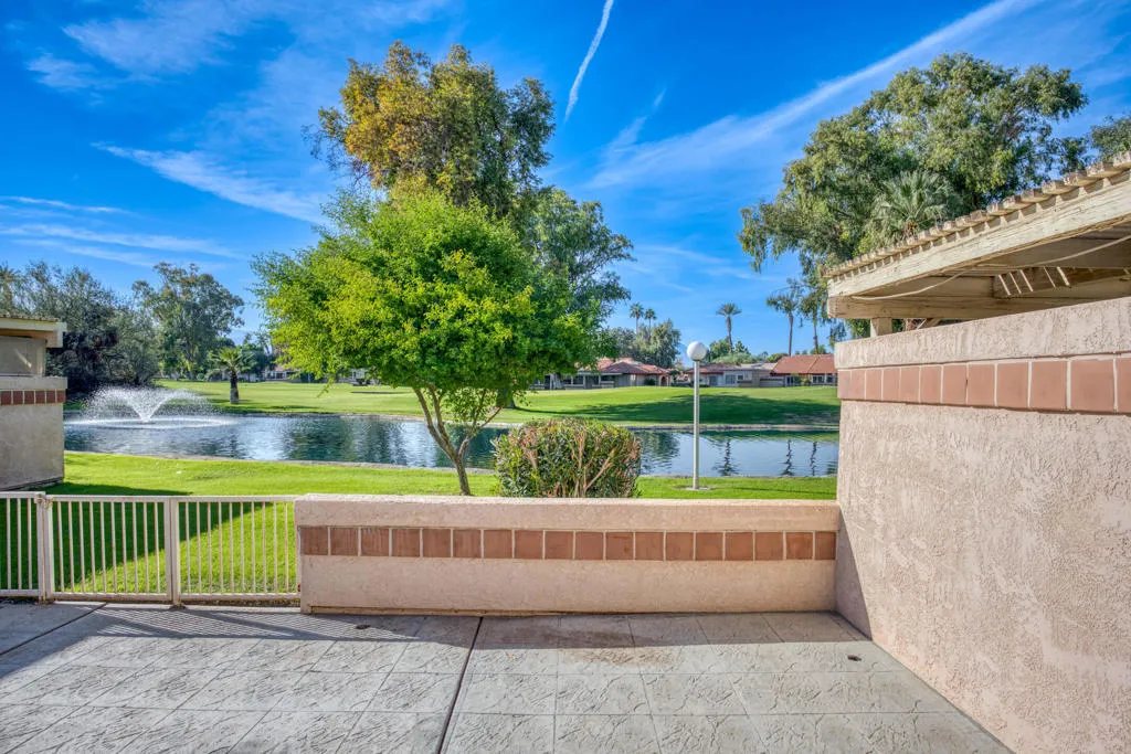 Welcome to Indian Palms Country Club! This 2 bedroom, 2 bathroom condo offers views of the pond with fountain and golf course from the living room, primary suite, and spacious back patio. The AC and the water heater were replaced in 2025, and the home features a 1-car garage plus an additional carport.Inside, the floorplan offers two ensuite bedrooms--each with its own private patio access. The front patio can be accessed from the guest bedroom, while the primary bedroom and living room lead to the picturesque back patio. The interior is all original, providing the opportunity to move in as is or update it to make it your own.Perfect as a full-time residence, seasonal getaway, rental, or investment. Short-term rentals are permitted during Coachella and Stagecoach, Enjoy guard-gated security, resort amenities, and a prime location close to festivals, golf, dining, and shopping.Correction: All condos in HOA 12 will have the exteriors, including garage door and the utility door, painted. The front door, kitchen door and gates will NOT be painted. This should be completed by the end of January, 2026.