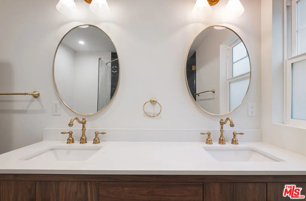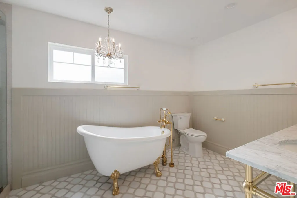 Step inside this iconic Craftsman home that blends charm and character with modern elegance. Beautifully restored original woodwork, a decorative fireplace, built-in cabinetry with leaded stained glass and coffered ceilings, lend the living and dining rooms a warm, timeless sophistication. The gourmet kitchen invites gatherings around a quartzite island as the home chef moves and grooves between top-of-the-line appliances. Every detail was considered from illuminated shelving and appliance garages to the farm-style sink, pot filler, pantry shelving, and abundant storage. Custom white oak cabinetry gives the space a comfortable, airy sophistication. When it's time to unwind, follow the wainscoted hallway to a serene bedroom retreat featuring a dream walk-in closet, thoughtful lighting, and a spa-like bathroom with a dual vanity, oversized shower, and standalone tub accented by gold fixtures and a gleaming chandelier. Two additional bedrooms complement the home, along with a stylish guest bathroom located in the mudroom/laundry area with access to the low-maintenance backyard. A detached bonus structure, once likely a carriage house, now serves as a versatile office or studio with finished walls and recessed lighting. The property is fenced with gated parking for multiple vehicles, plus a driveway space. Modern upgrades include solar panels, a tankless water heater, central air and heat, a pull-down attic staircase, and a classic California basement. The primary suite add-on, new plumbing, electrical work and a bolted foundation are all fully permitted. This 1909 Craftsman not only offers exquisite design and modern comfort but stands as a living piece of Los Angeles history. This listing is located within the Jefferson Park Historical Preservation Overlay Zone HPOZ.