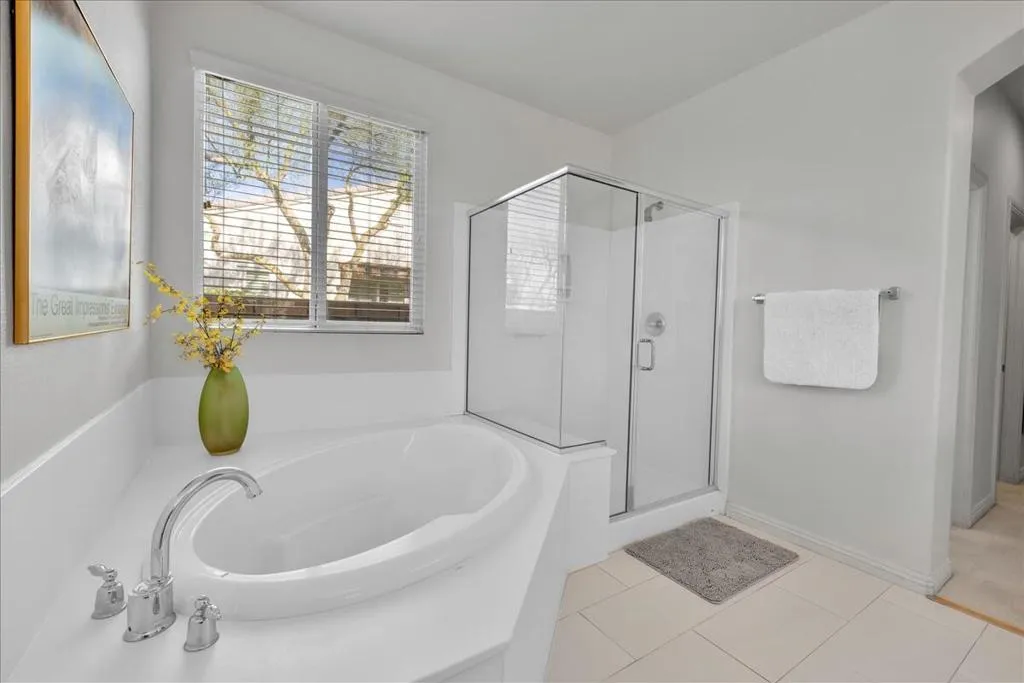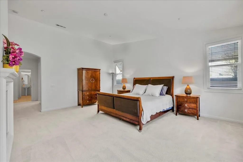 PALM SPRINGS with Solar! Located in the prestigious gated Four Seasons 55+ Community with low HOA's, this rare Canyon 3 model offers 2,825 Sq Ft., 3 bdrms/2.5 baths, with open floor plan. The modern SOLAR SYSTEM, installed in 2021, will save you $$ in electrical bills for years to come! It shows beautifully with high ceilings and tiled floors throughout. It includes a gourmet kitchen with center island, walk-in pantry, a breakfast area & bar-top seating, plus a formal dining room. Sun filled living spaces include a formal living room plus a separate family room, and the entire house is newly painted throughout. The Primary suite has high ceilings, a gas fireplace, 2 enormous walk-in closets, a spacious bath with dual sinks, a soaking tub, separate walk-in shower and private water closet. The additional 2 bed rooms or Den/office are located at the opposite end including a Jack & Jill bathroom, dual sinks & shower/Tub. There's also an additional powder room for guests. A separate laundry room leads to the attached garage for easy house entry. Your private rear grounds offer mountain views from your large covered patio with mature landscaping. Positioned in a cul-de-sac, there's room for 6 cars in the driveway for guests, and just a short distance to the impressive club house. This fully staffed lodge is where friends & neighbors gather to celebrate everyday life with abundant social activities. Amenities include a fitness center plus an aerobics & ballroom, game & library room. Community amenities include multiple pools & spas, Pickleball & tennis courts, bocce ball, handball, and walking trails. Minutes away is the heart of Palm Springs packed with world class restaurants & shopping, the Agua Caliente Casino and so much more.