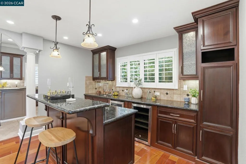 At the heart of this home is an updated gourmet kitchen, a true chef's delight featuring pot filler faucet, rich cherry cabinetry, a massive granite island with dual dishwashers, double oven and a premium 6-burner Thermador range with a grill and griddle. A dedicated wine and beverage center makes hosting effortless. The bright, open floor plan flows beautifully across gleaming Brazilian cherry hardwood floors, accented by elegant crown molding and plantation shutters. A highly sought-after Downstairs Bedroom and Full Bath offer perfect flexibility for guests, an office, or multi-generational living. Peace of mind comes standard with a brand new 2024 HVAC system. Additional features include a spacious 3-car garage, recessed lighting, and a cozy fireplace. Step outside to enjoy the generous 0.27-acre lot. HOA amenities include a community pool and clubhouse. Conveniently located minutes from shopping, dining, parks, BART, and Hwy 4. Don't miss this opportunity—this home is a must-see!